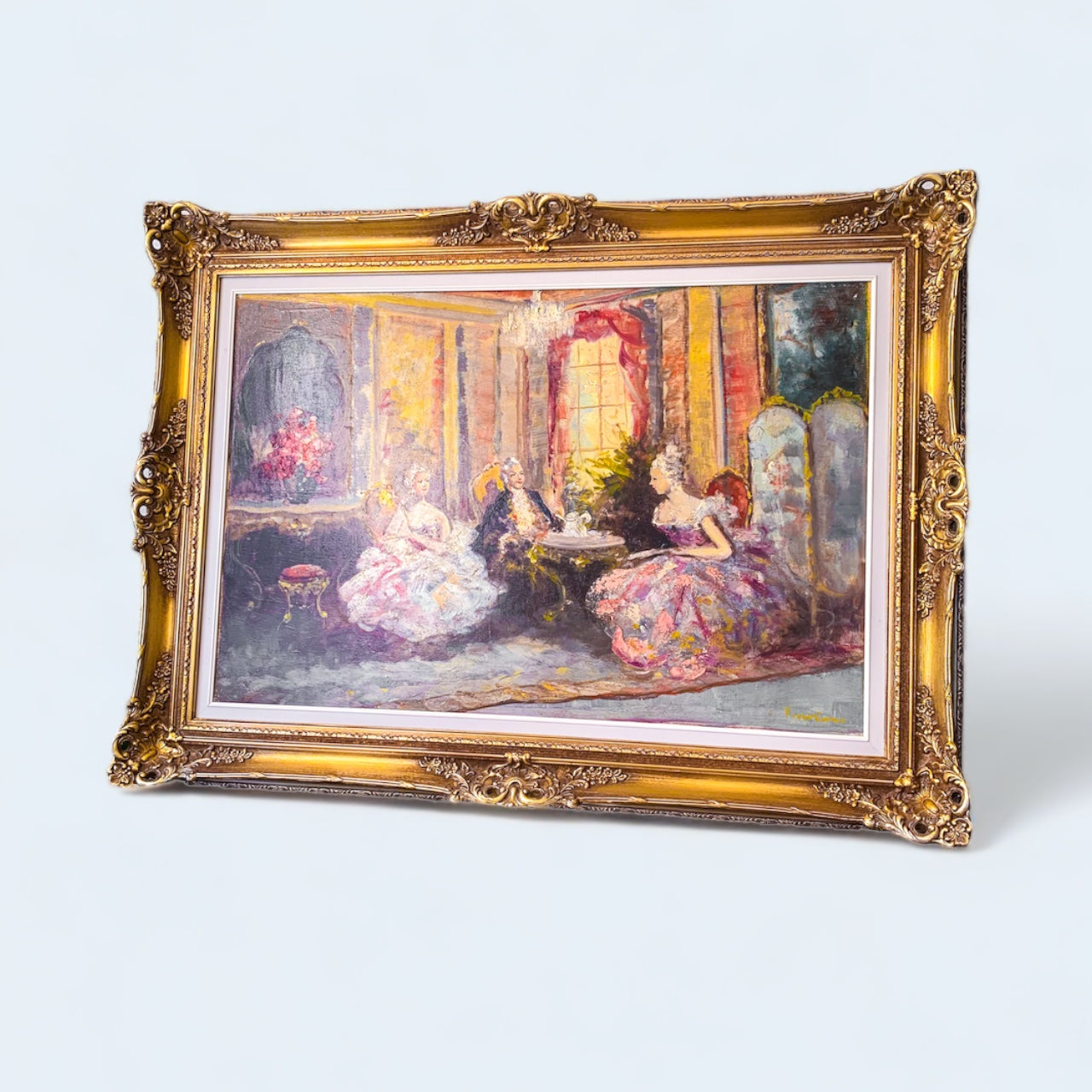 Château Versailles Meeting - French Renaissance Style Oil Painting in Baroque Gold Wooden Frame