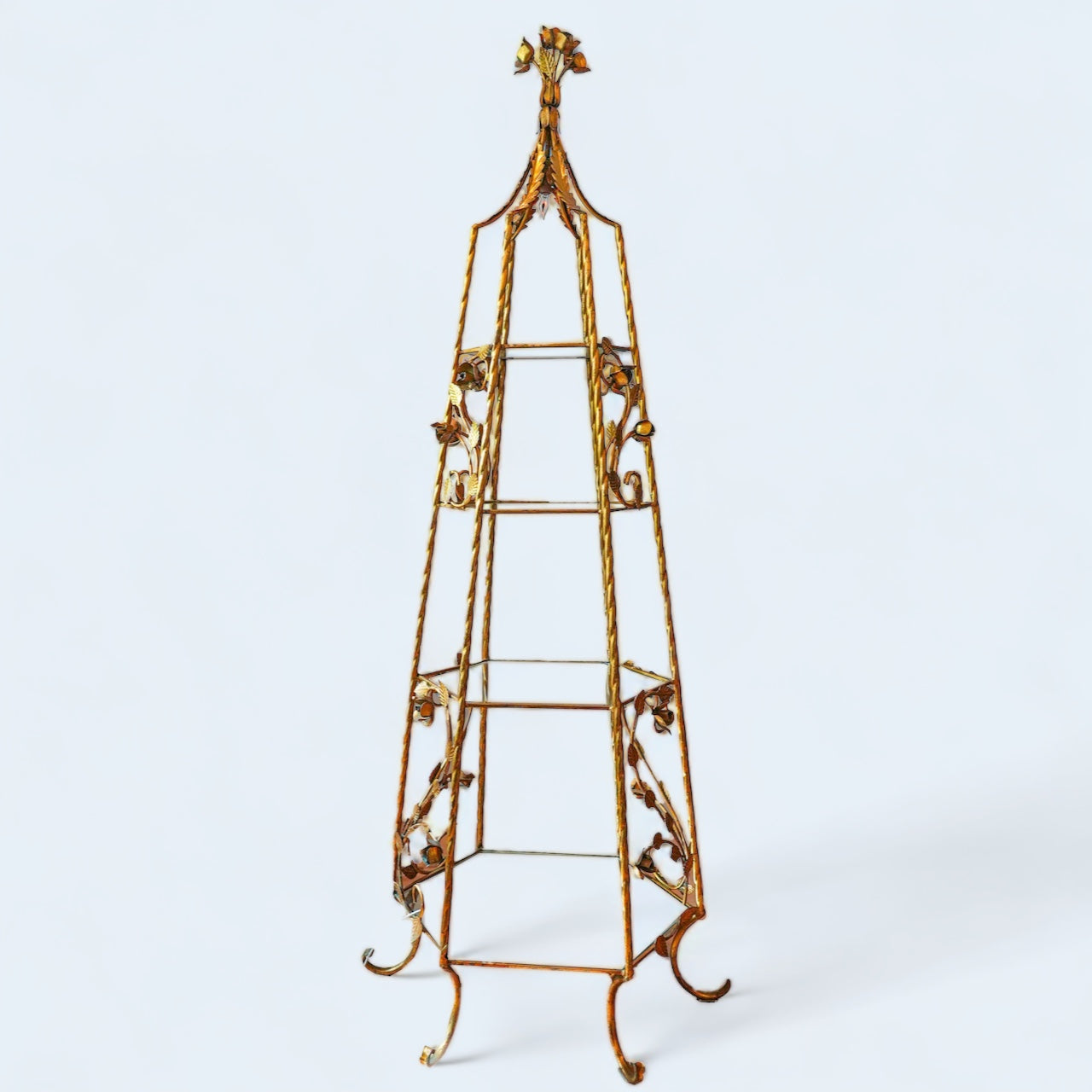 1940's Vintage Italian Florentine Tole Gold Gilt Lighted Etagere With Roses