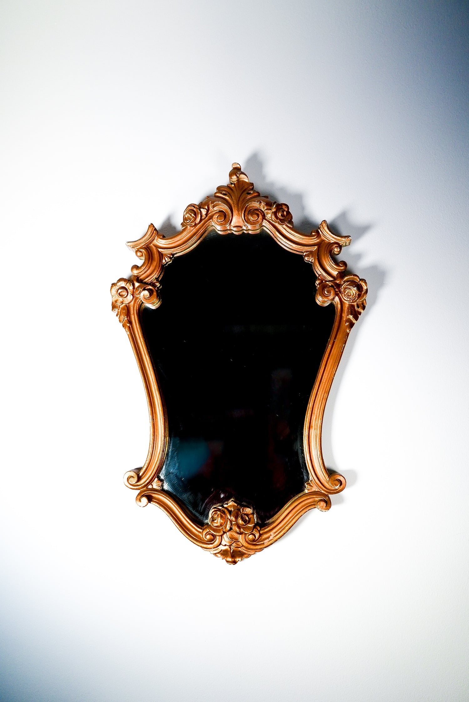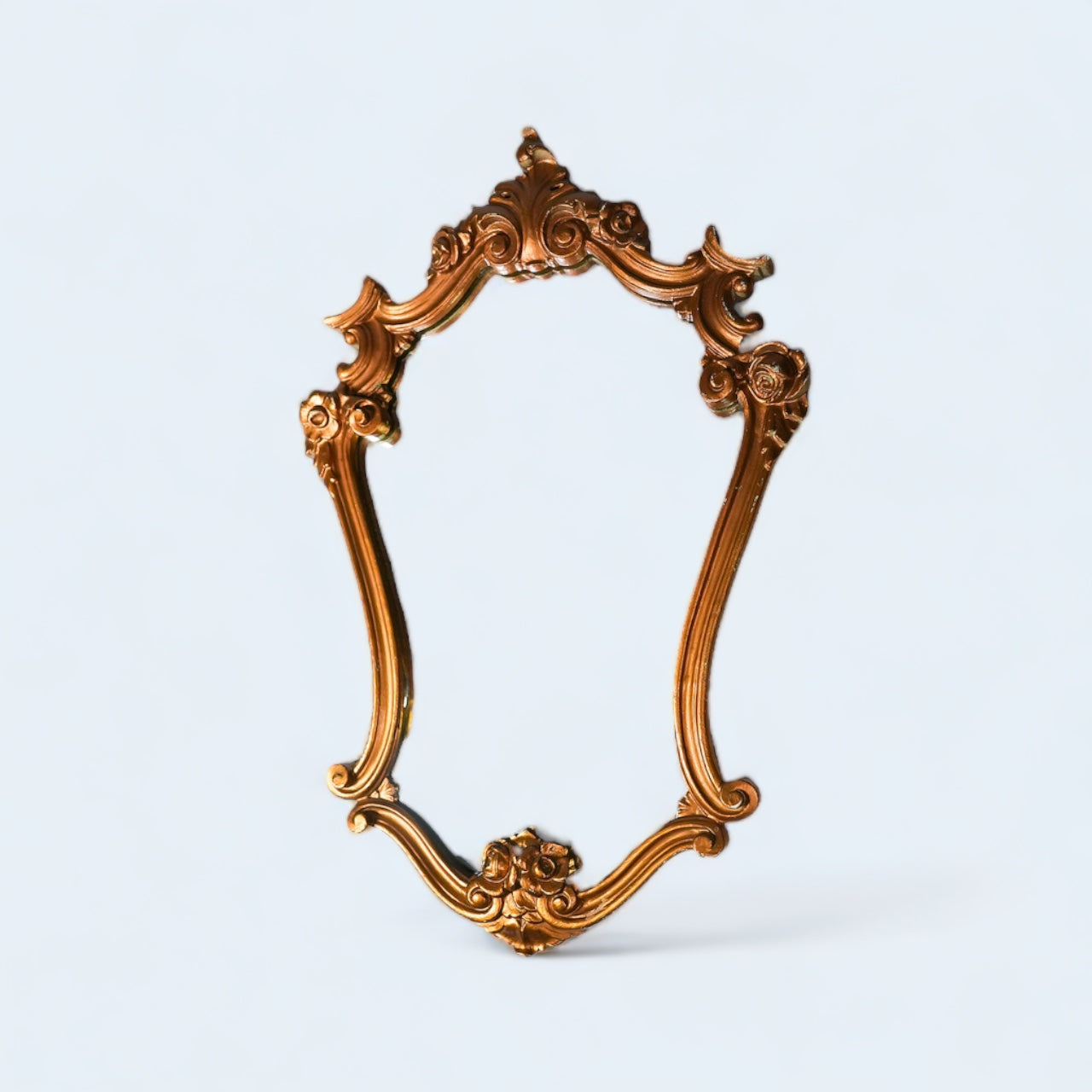 Indulge in opulence with our 1970 Italian Baroque Gold Vintage Mirror. Handcrafted in Italy, this medium-sized mirror boasts intricate gold detailing and a baroque design that will elevate any space. Add a touch of luxury to your home with this vintage mirror.