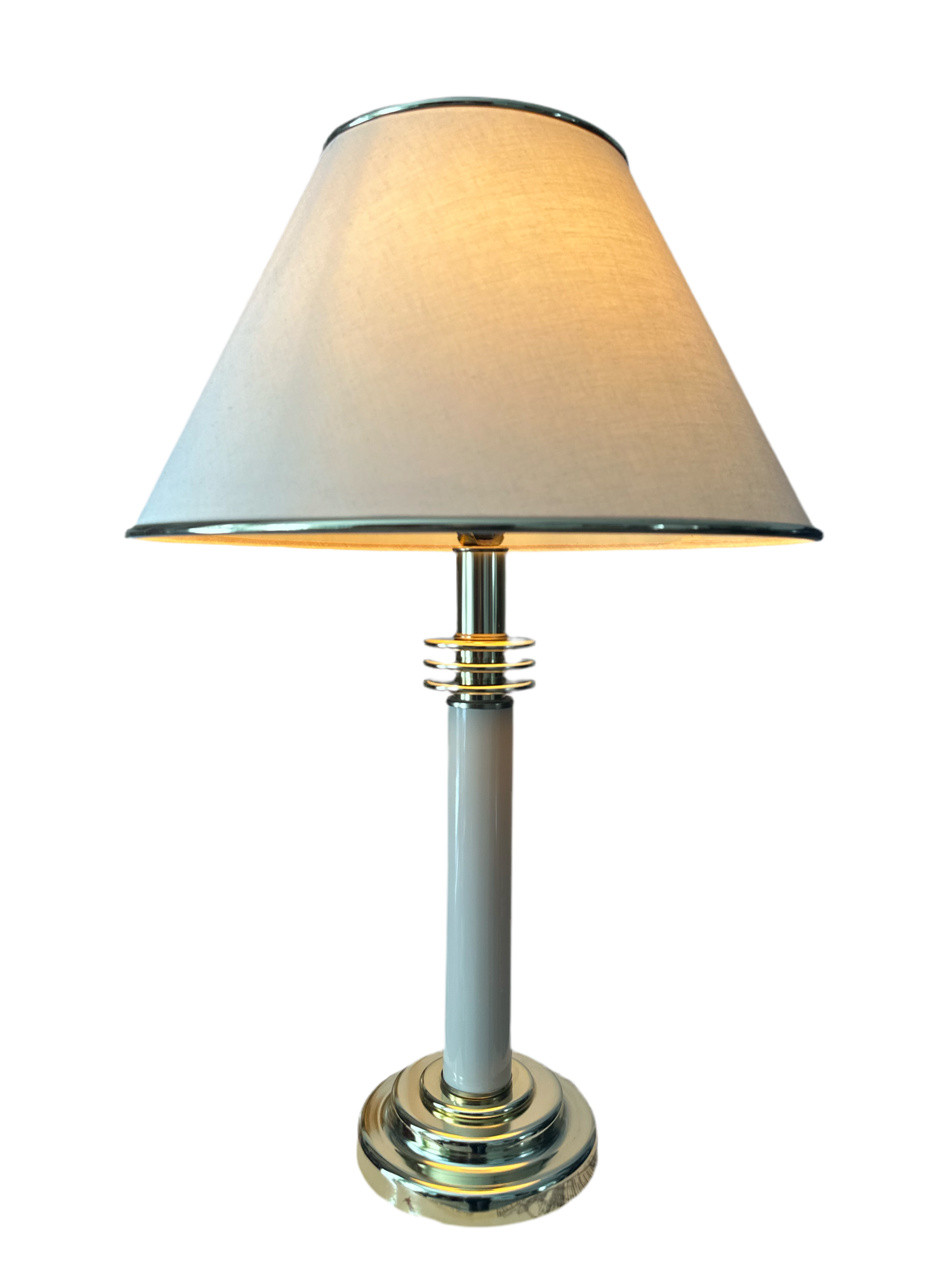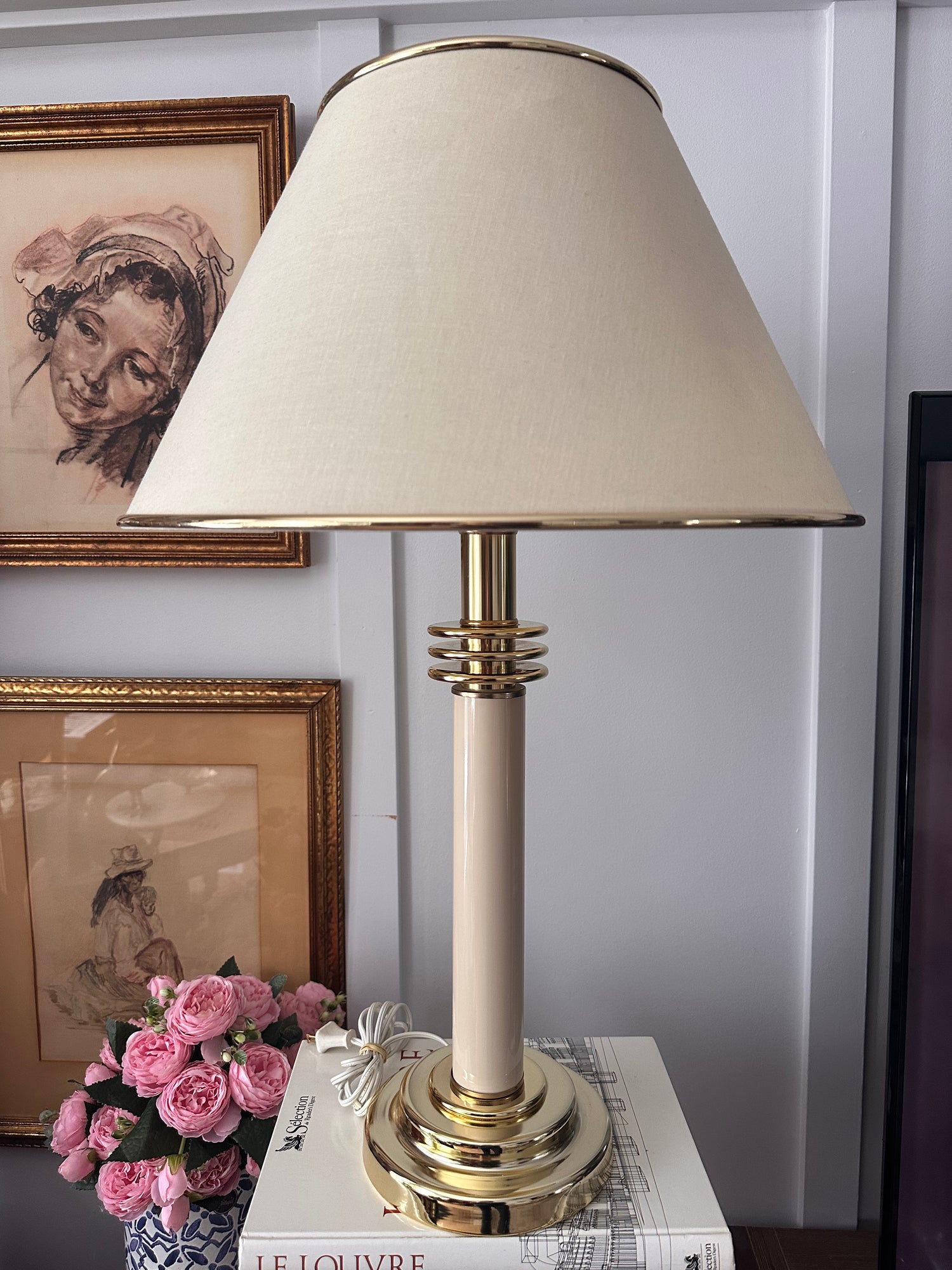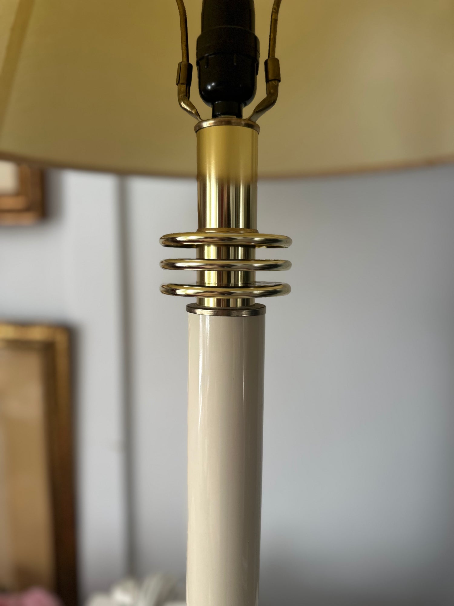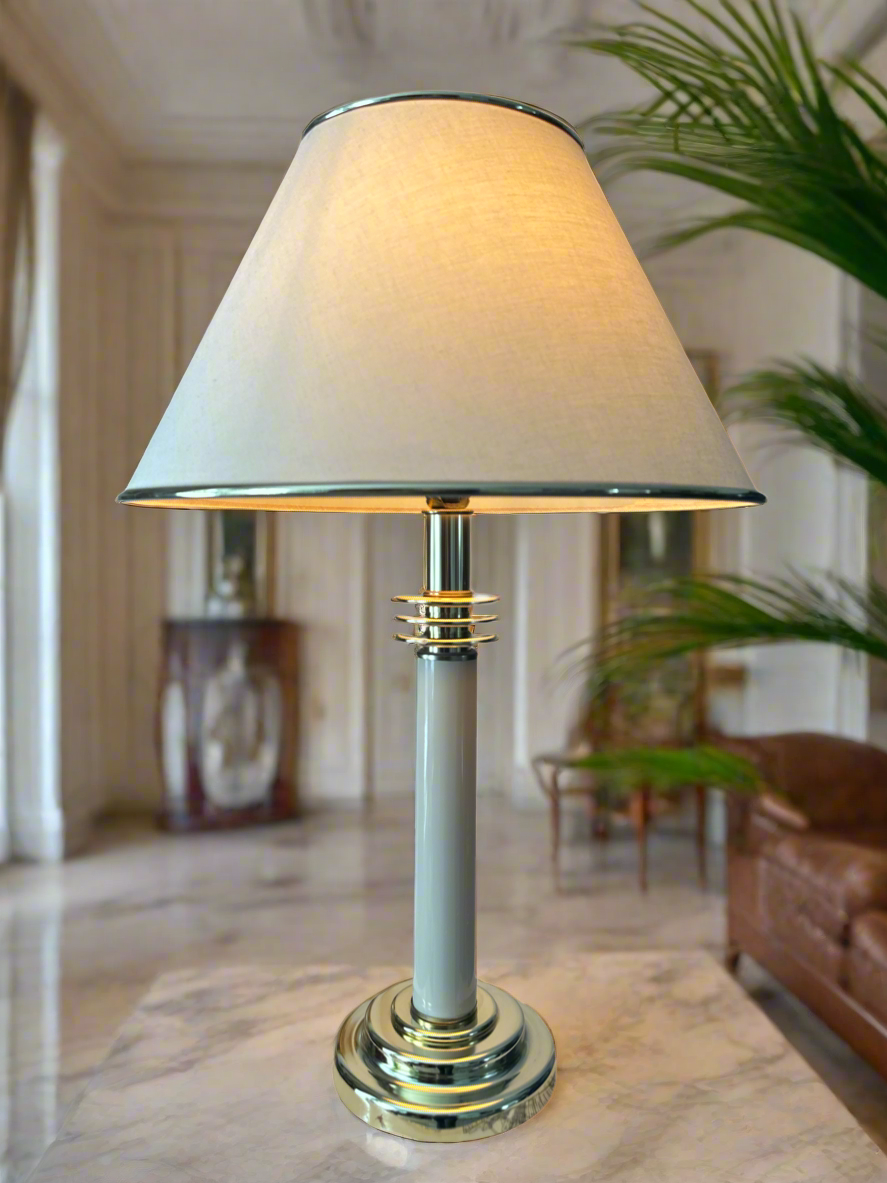 - Original lampshade: Features its characteristic gold rings, perfectly matching the base
