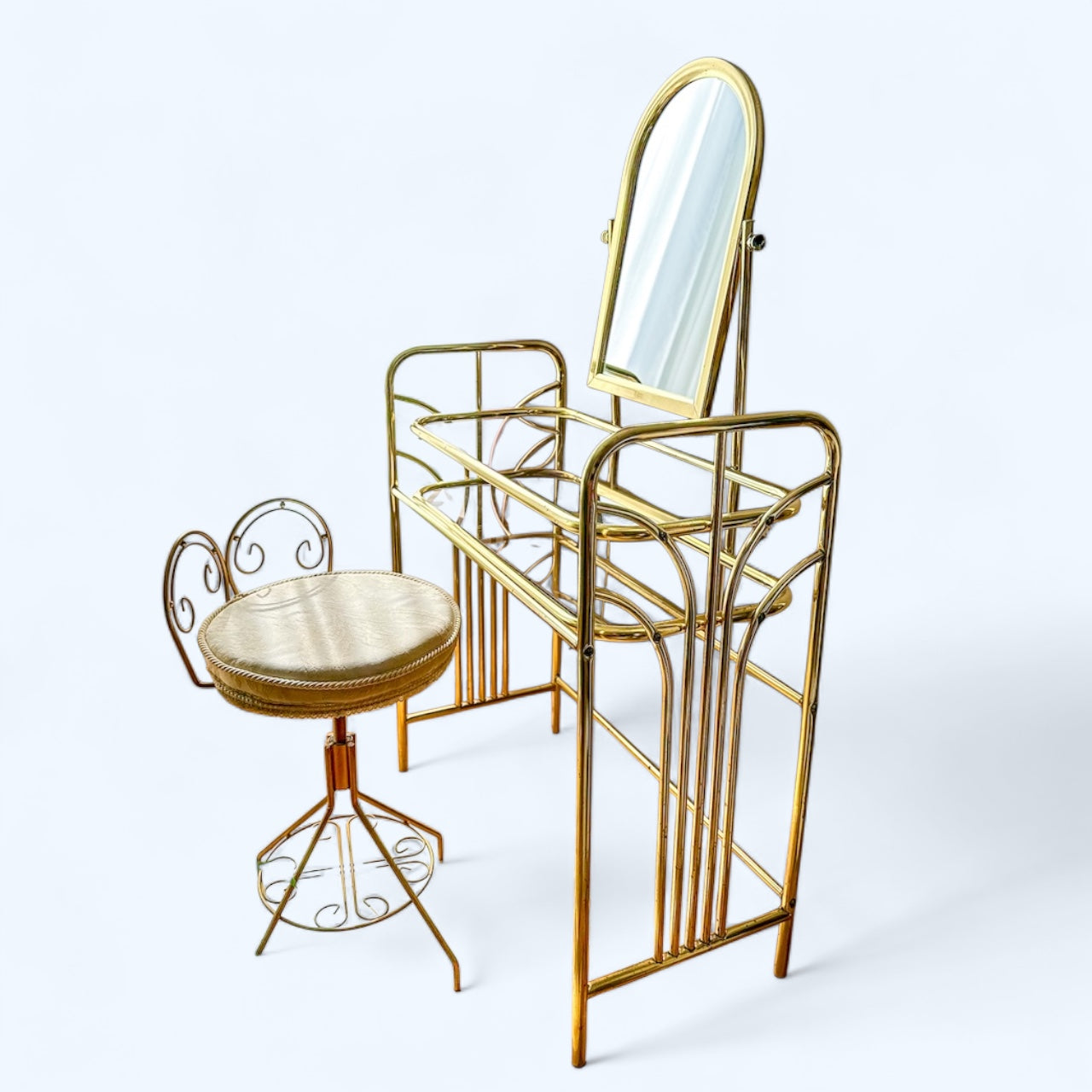 Hollywood Regency Vintage Brass Vanity Set