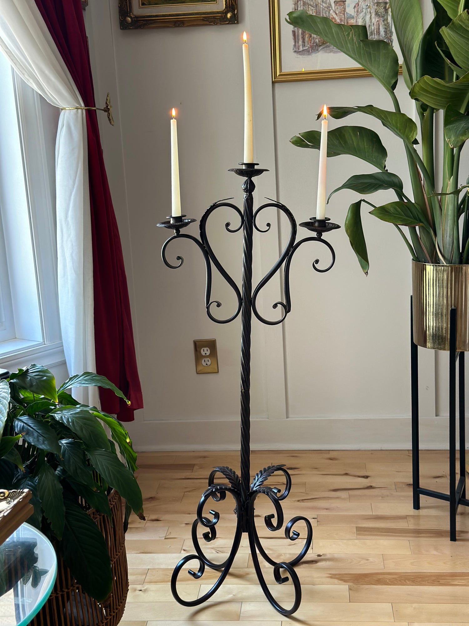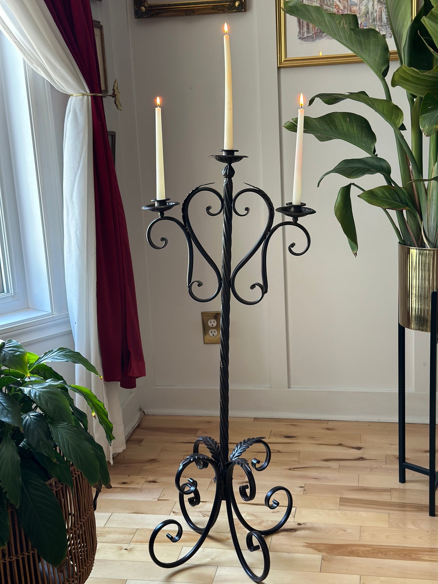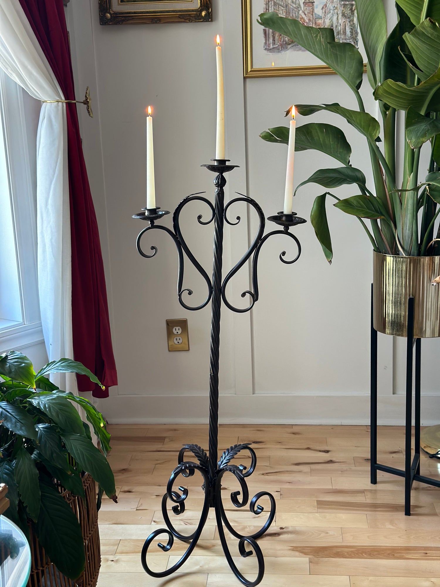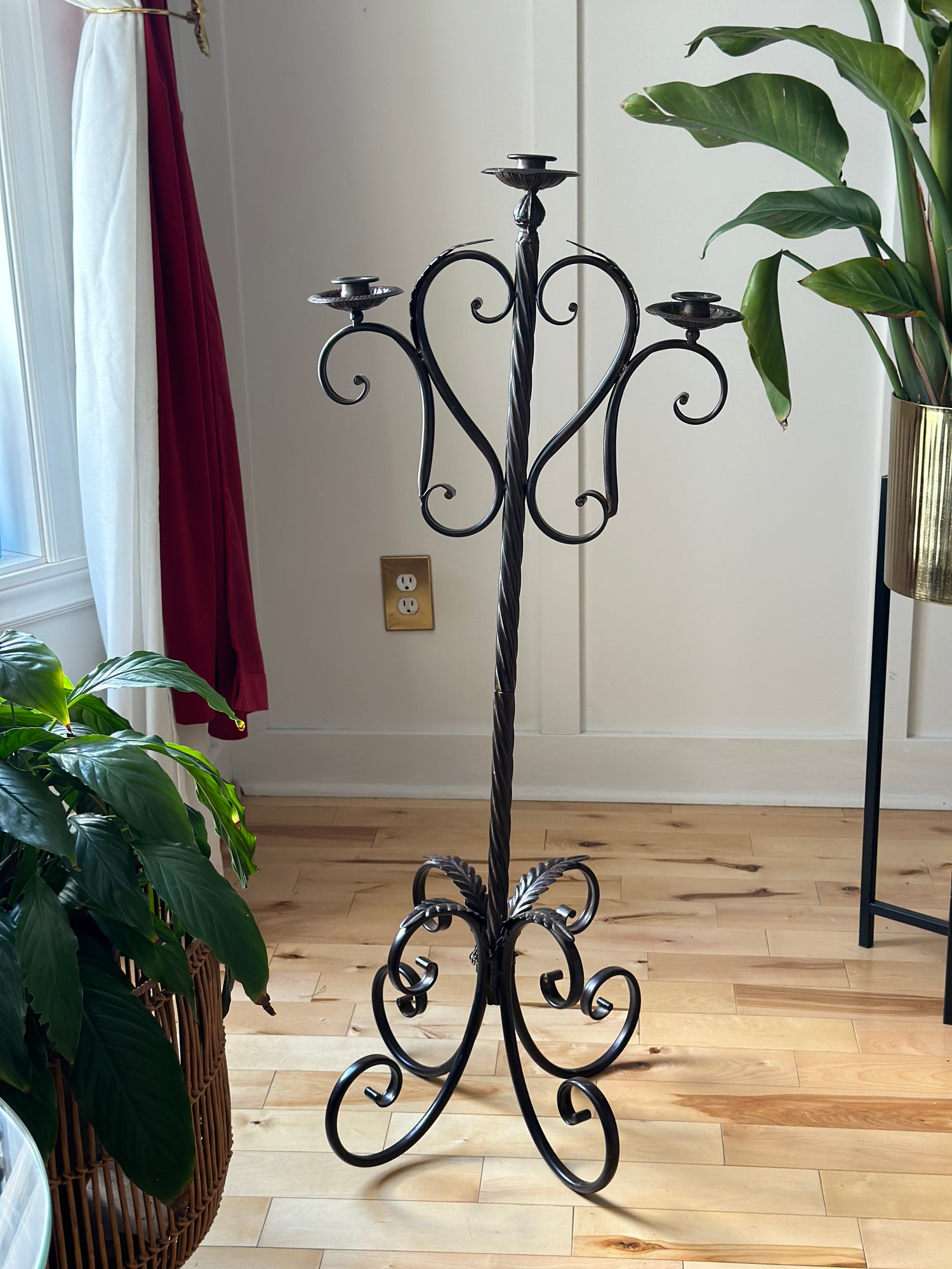 Medieval Style Vintage Twisted Wrought Iron Candelabra