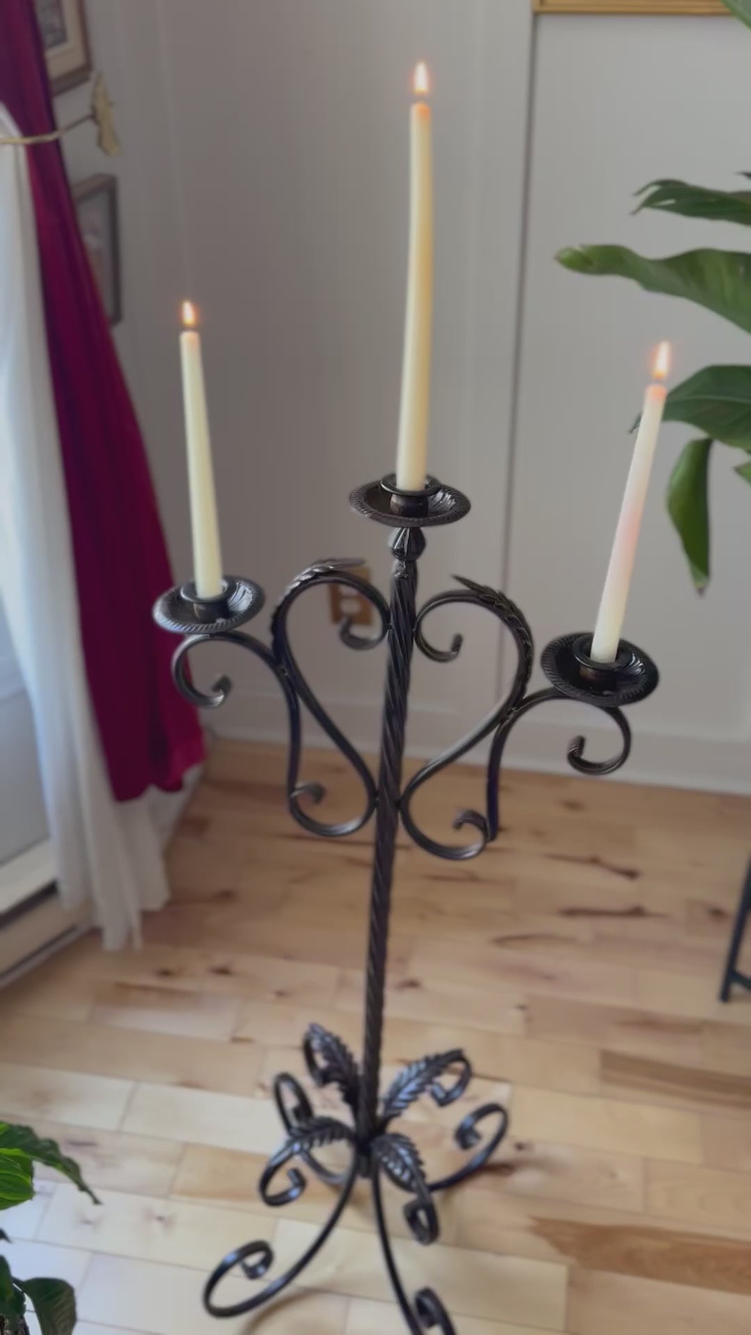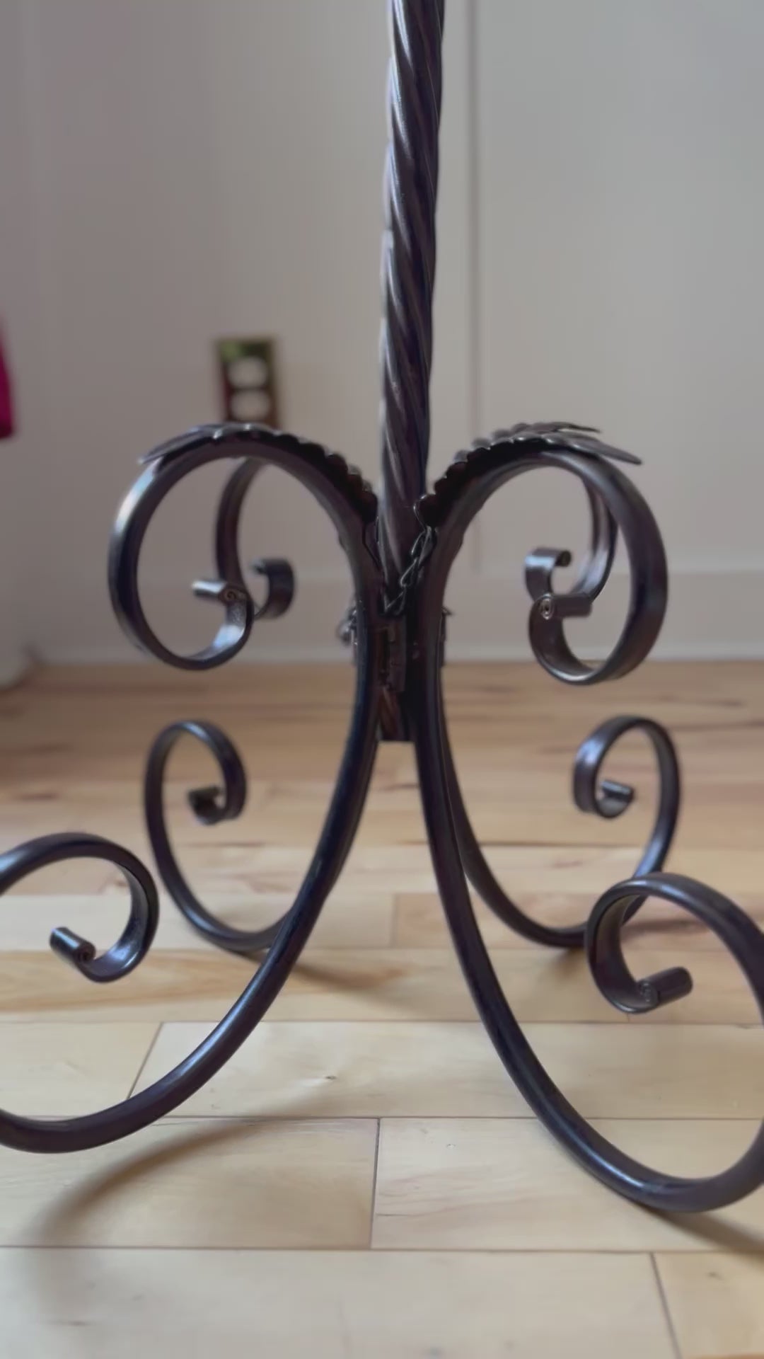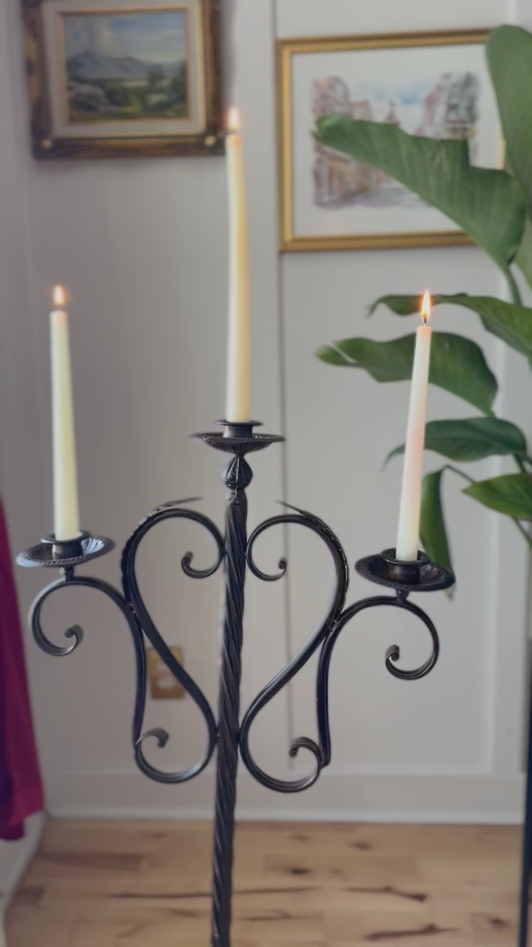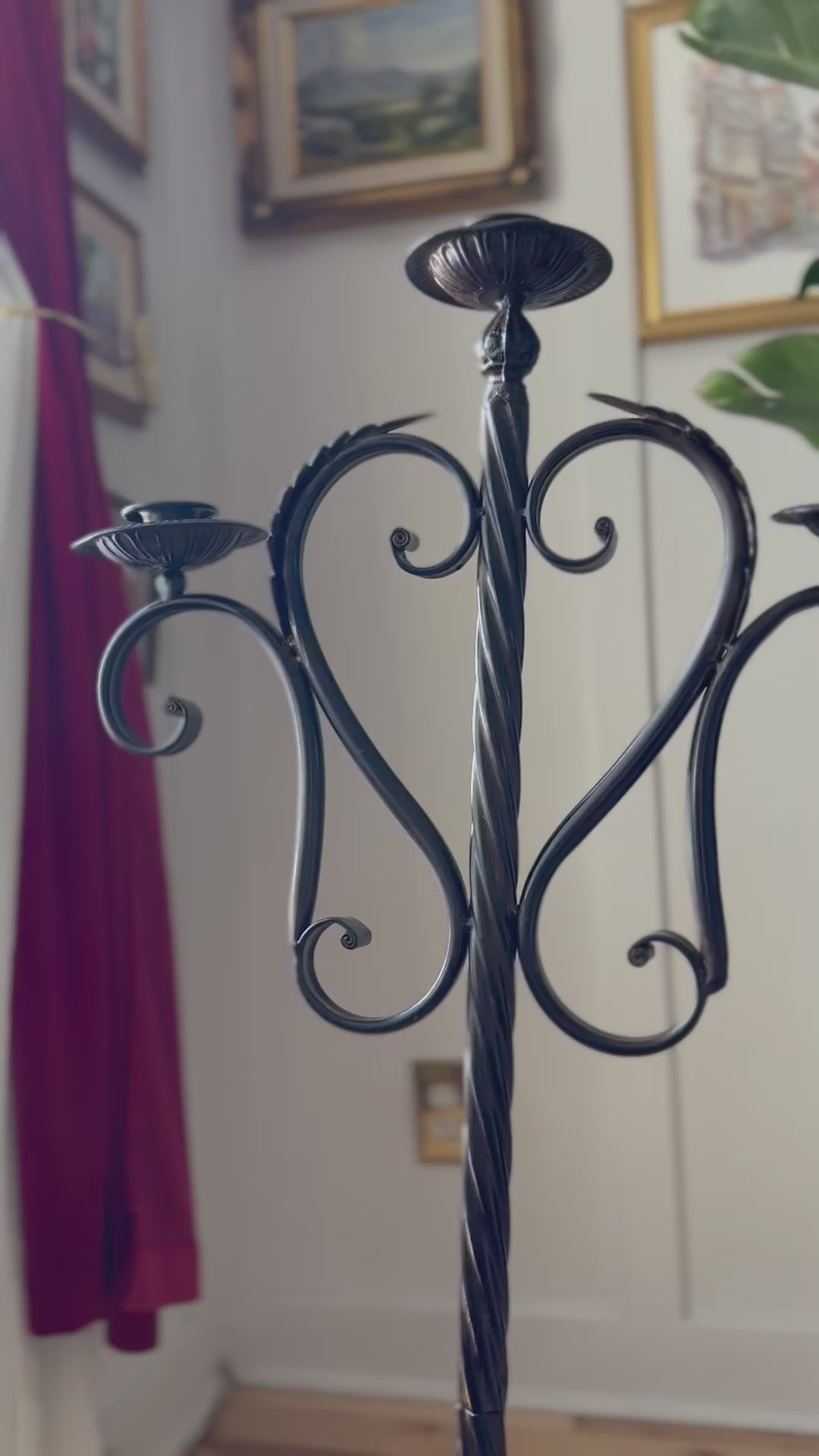 This Medieval Style Vintage Twisted Wrought Iron Candelabra features an intricate twisted design, crafted with high-quality wrought iron. Its antique look is perfect for medieval-themed events or for adding a touch of history to any space. Elevate any room with this vintage candelabra's timeless charm and elegance.