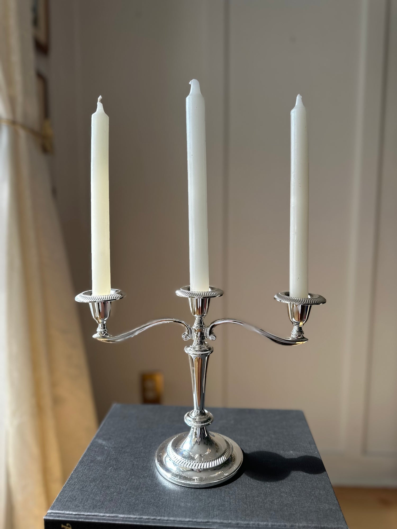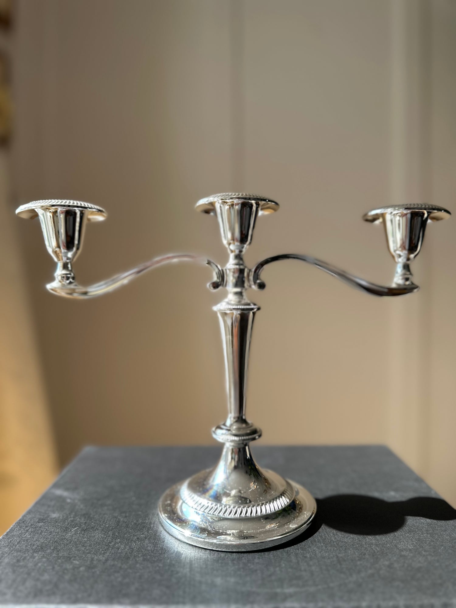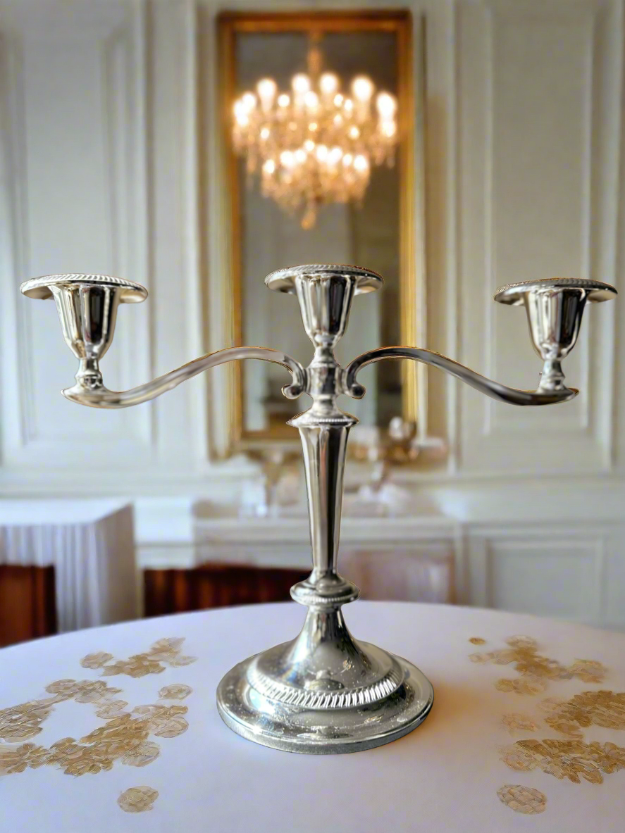 Silver Table Vintage Candelabra England Zinc