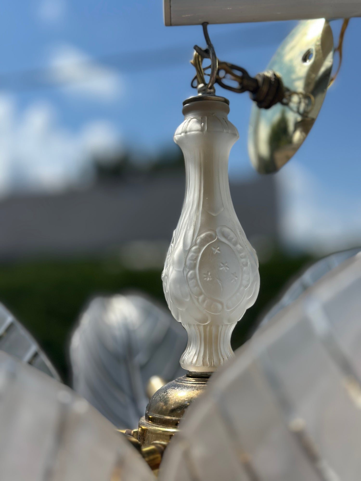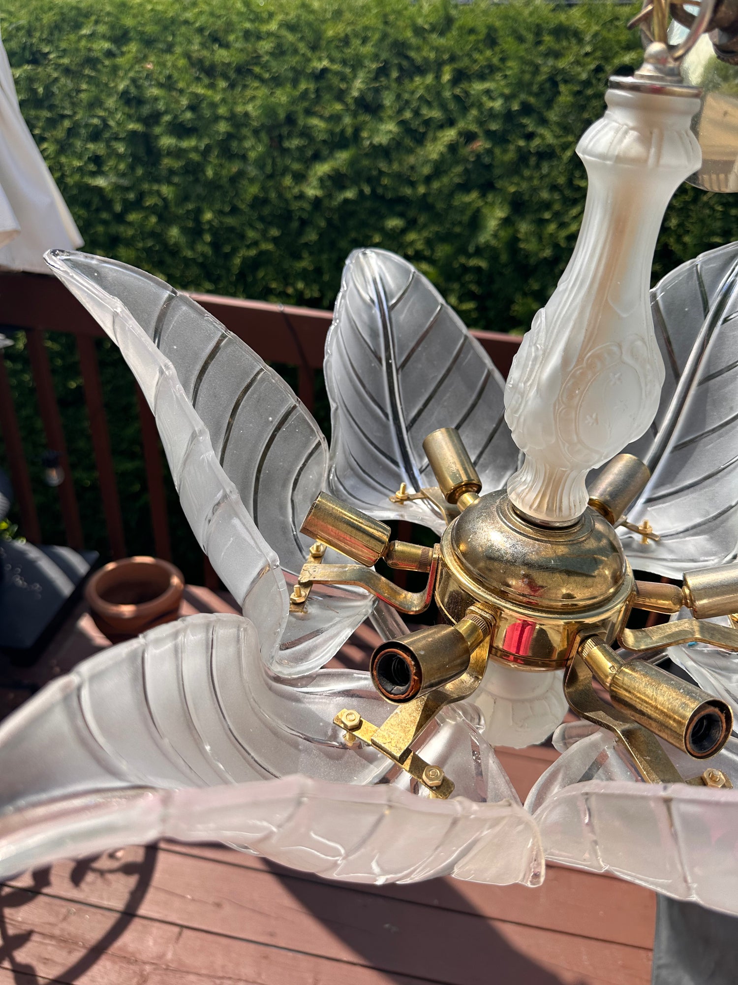 Vintage Murano Glass Leaf Chandelier with Brass Detailing