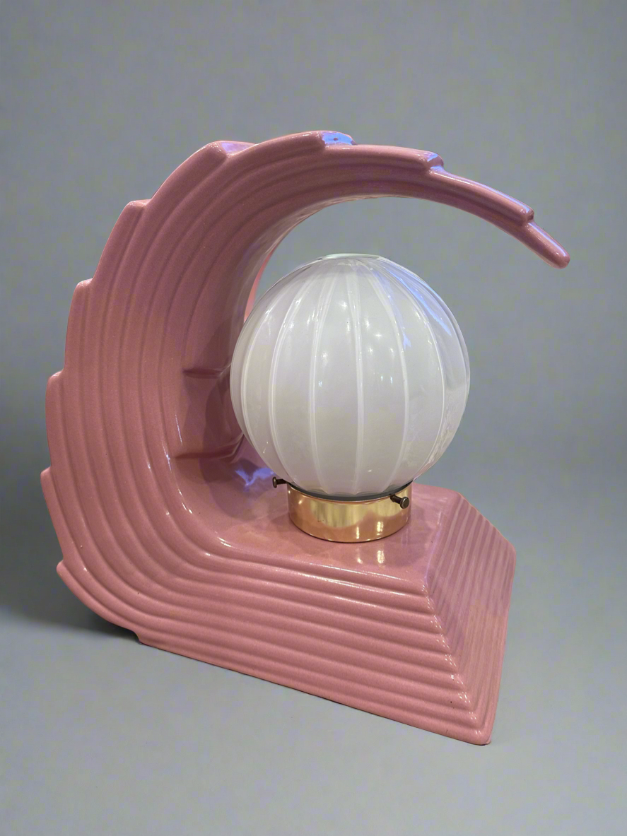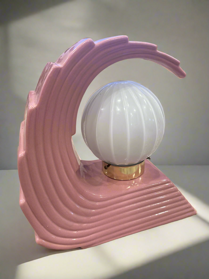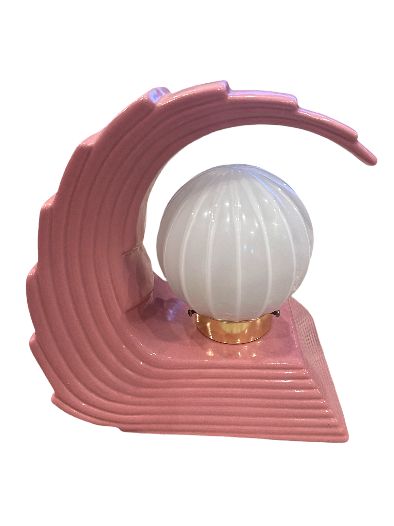 1980s Art Deco Revival Pink Ceramic Wave Lamp