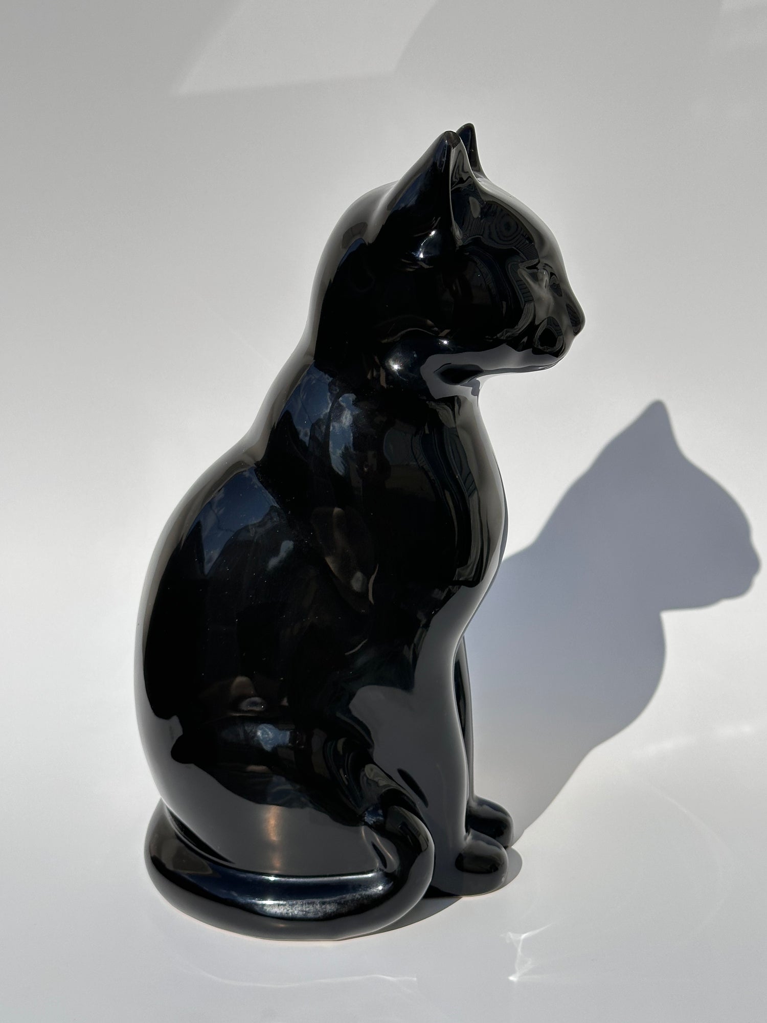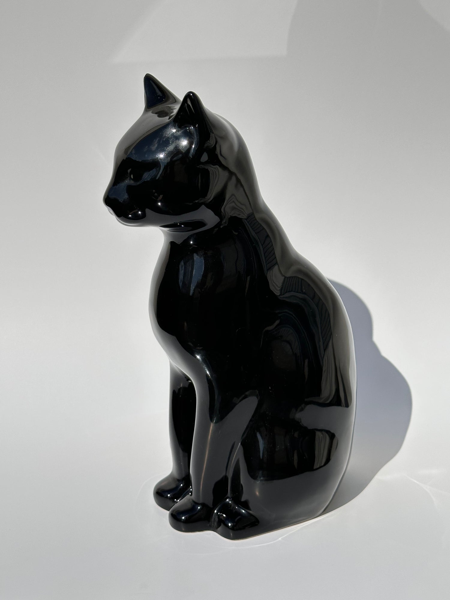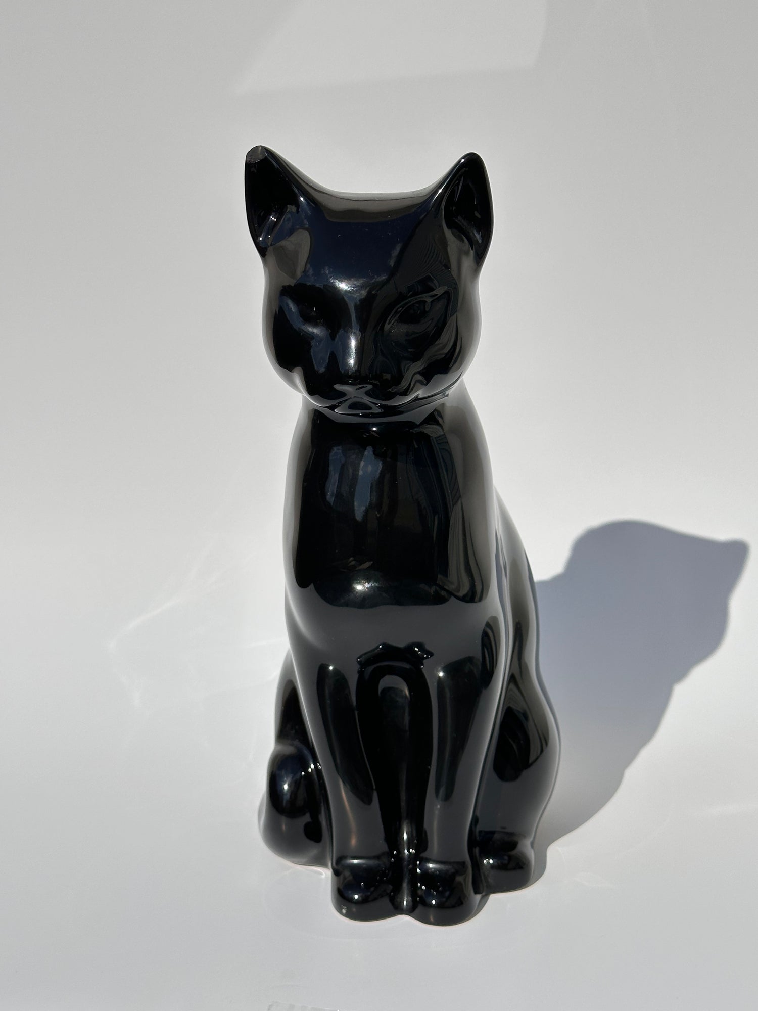 - Material and Appearance: Vintage black cats are typically crafted from ceramic, resin, or other materials, often featuring a sleek, glossy black finish. The one is ceramic with a polished surface, reflecting light.