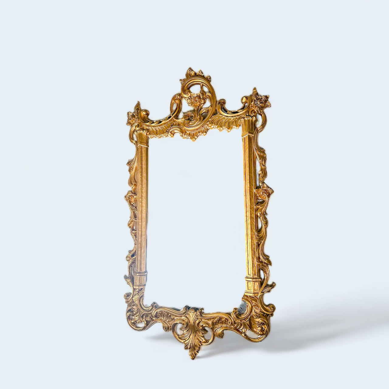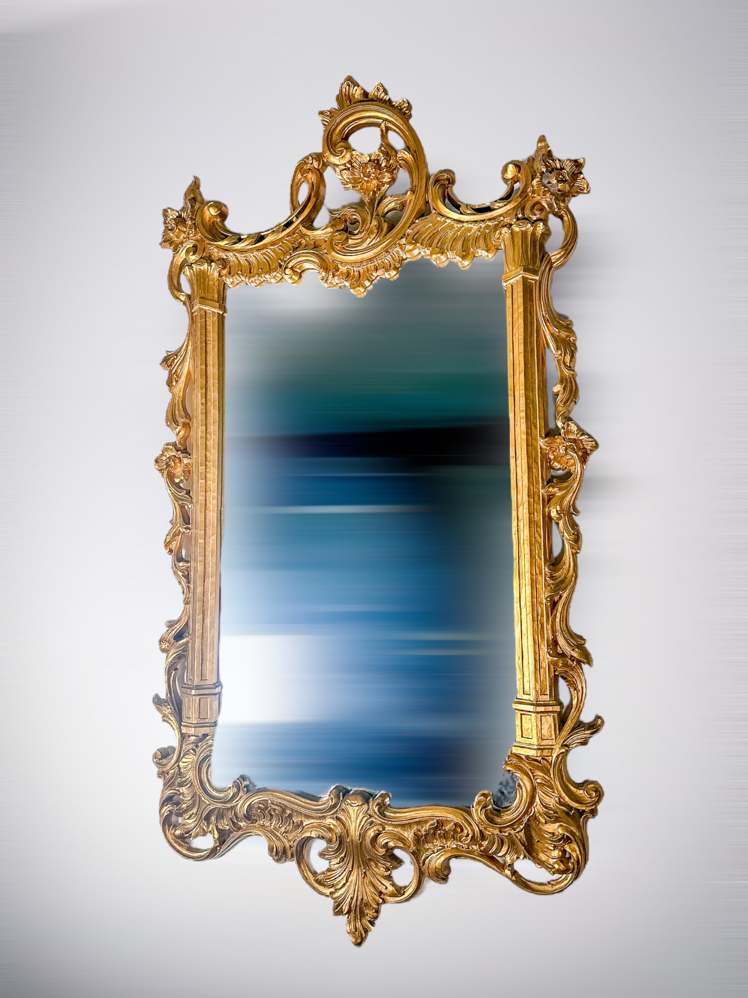 Add a touch of elegance to any room with our Gold Vintage Gilded Baroque Mirror, imported from Italy. The intricate gilded baroque design adds a luxurious and timeless feel to any home décor.