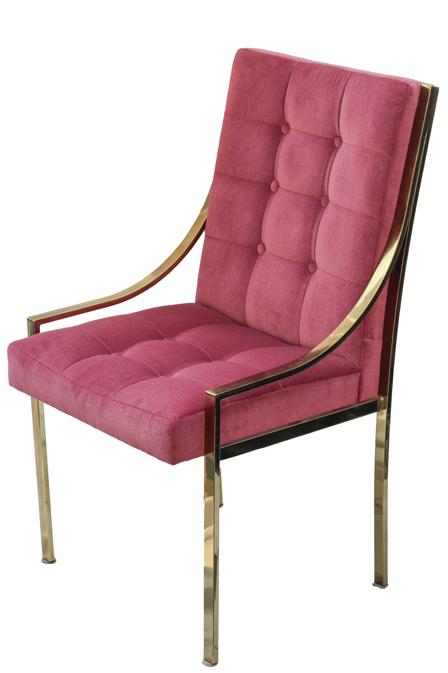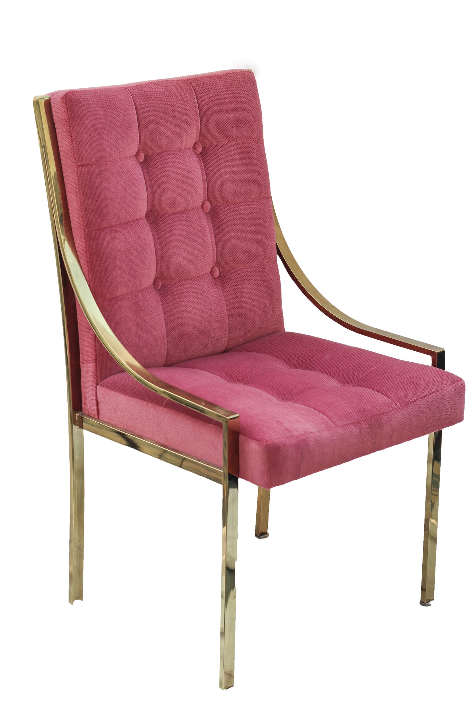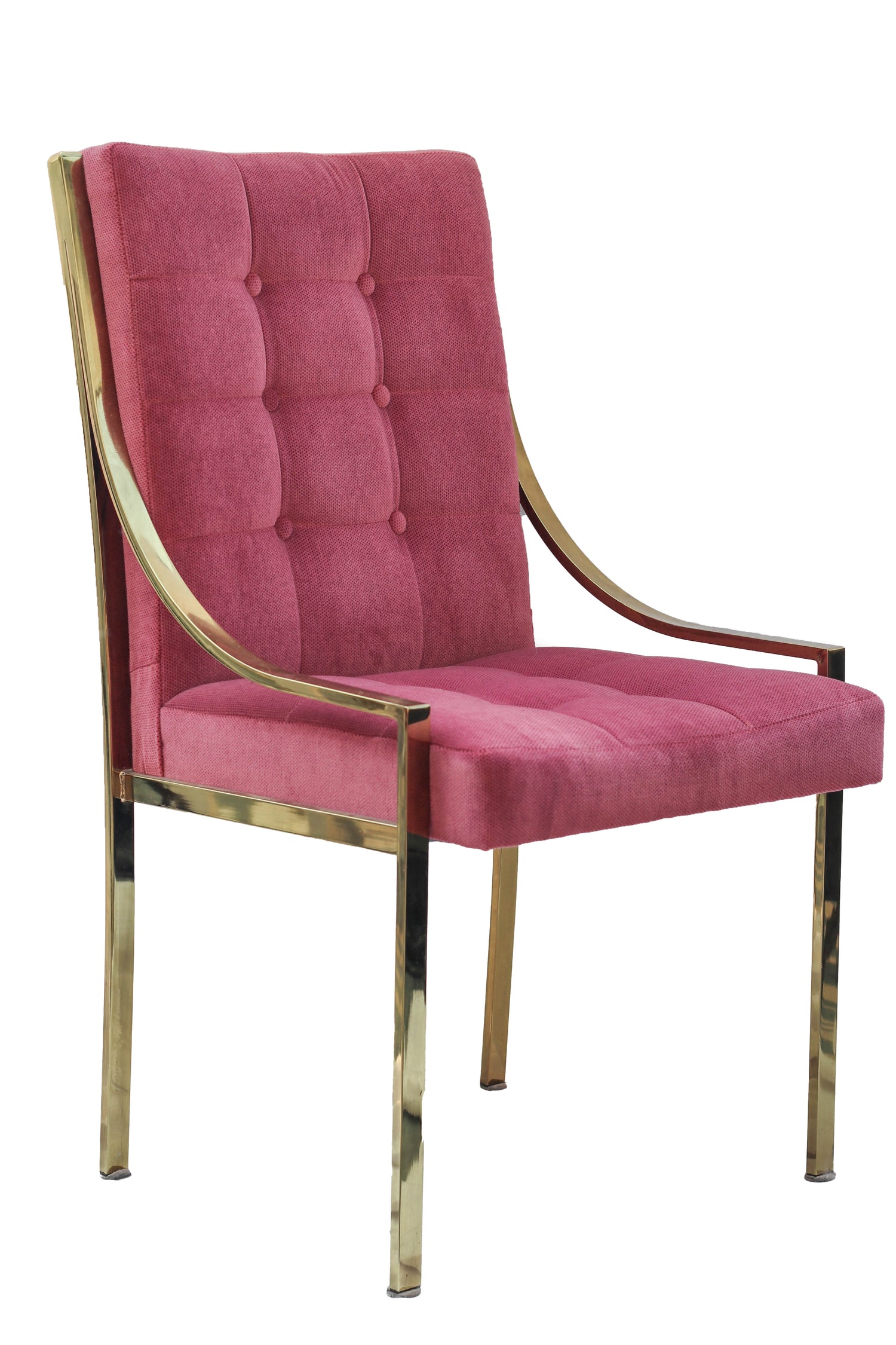 Hollywood Regency Pink Velvet Vintage Brass Dining Room Chair