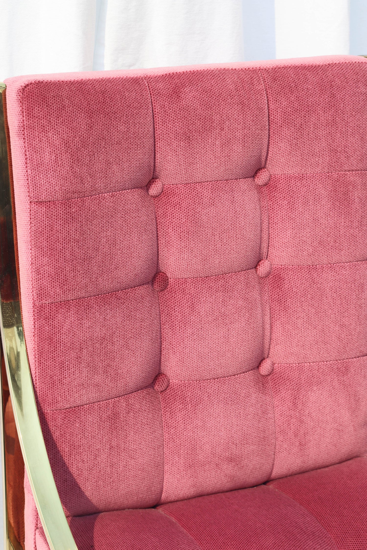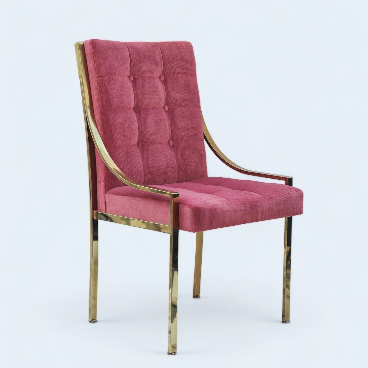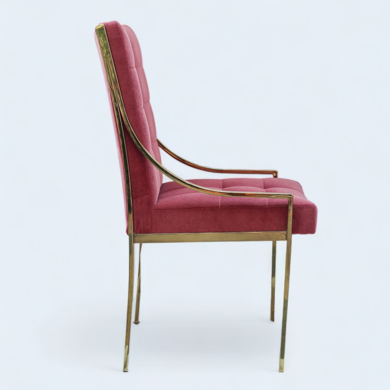 Hollywood Regency Pink Velvet Vintage Brass Dining Room Chair