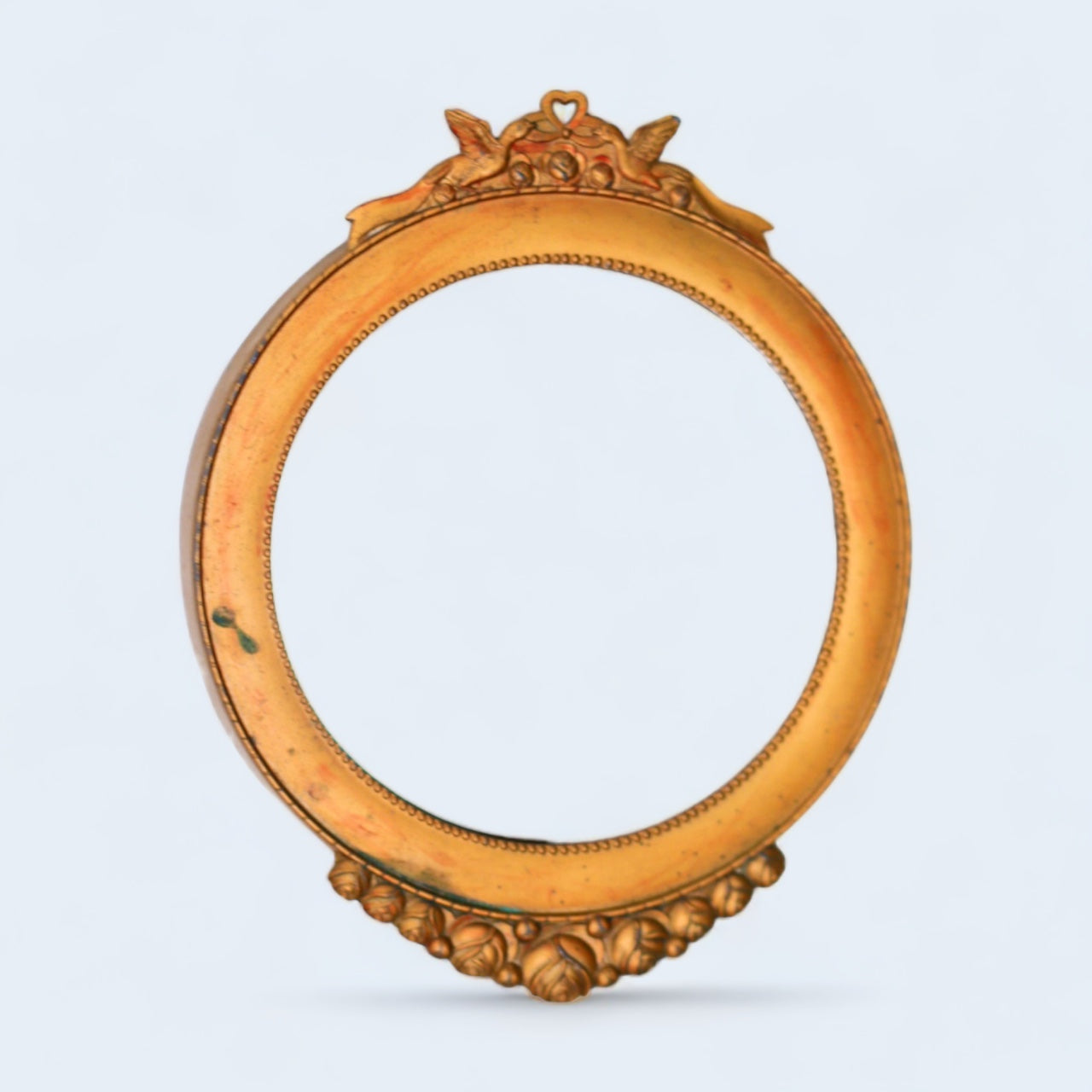 The Love Doves - Vintage Small Convex Round Brass Mirror
