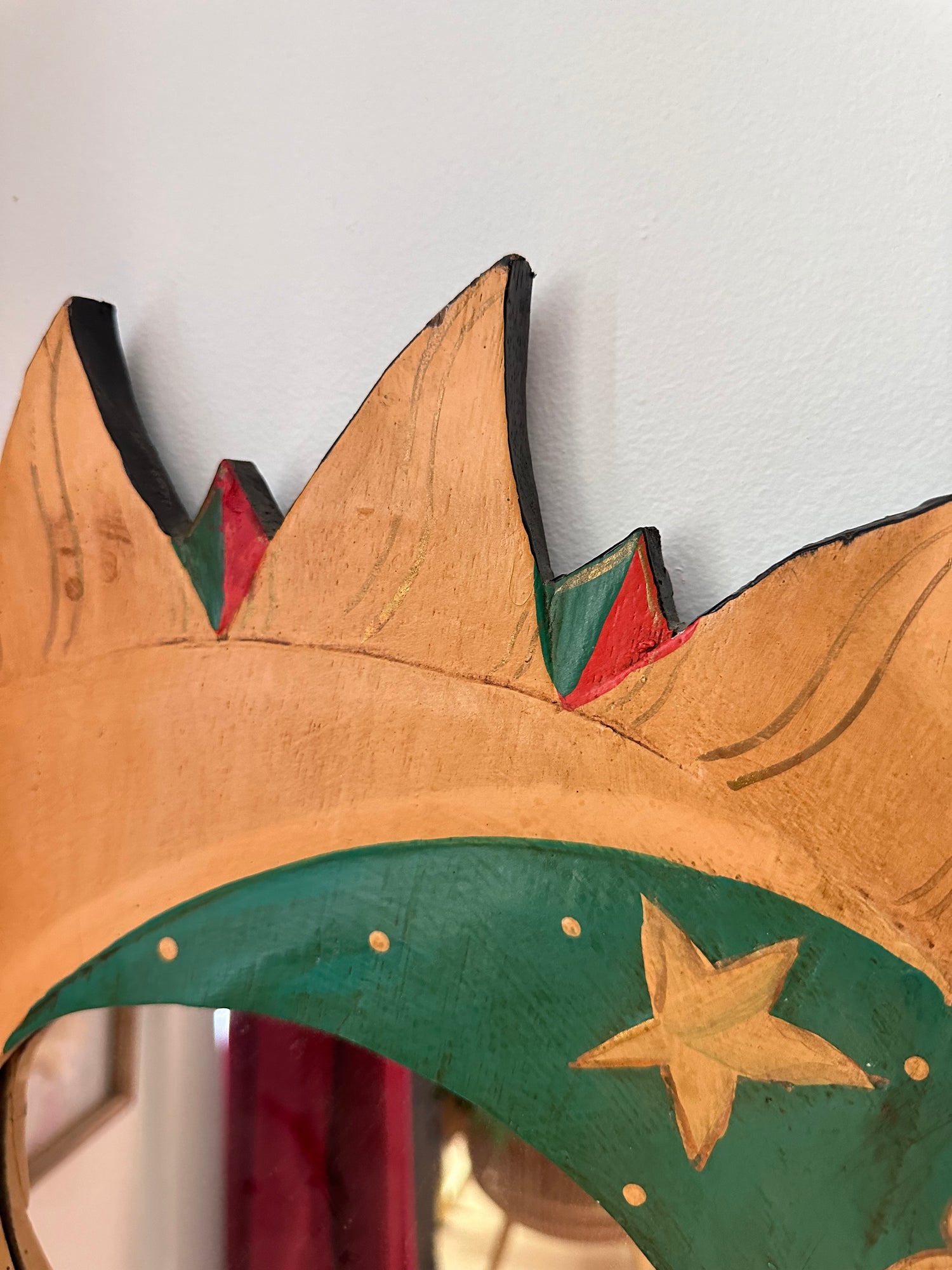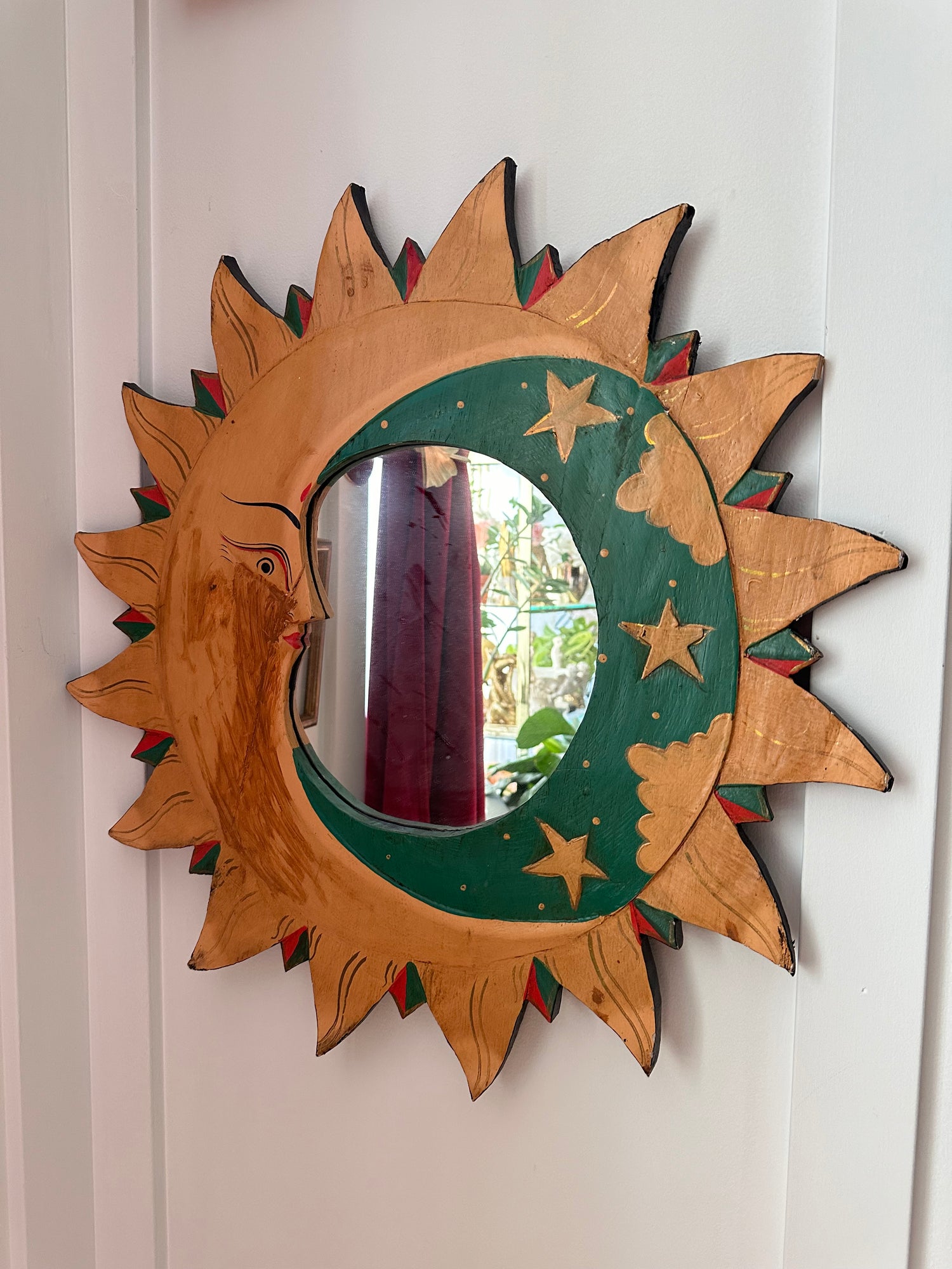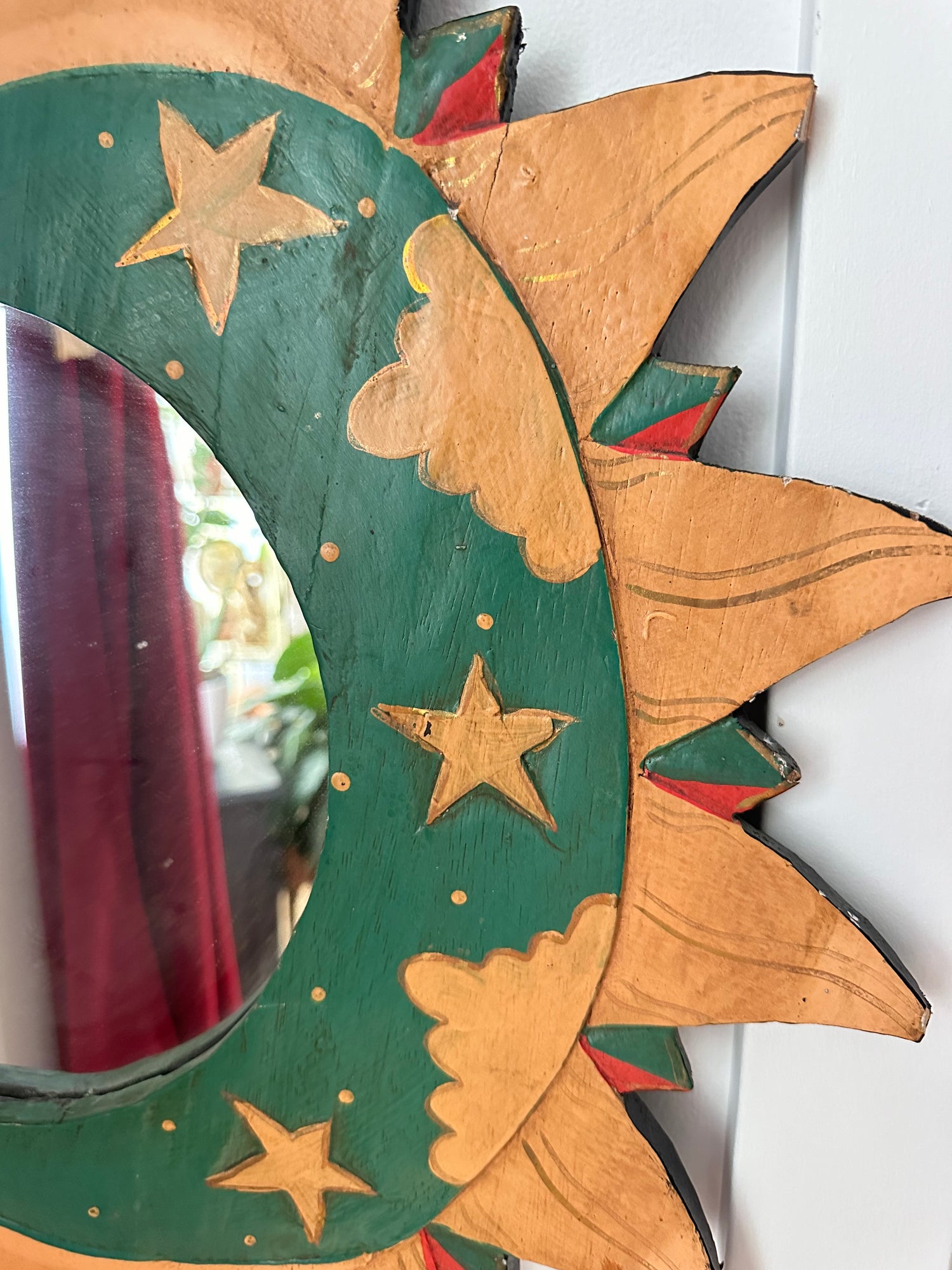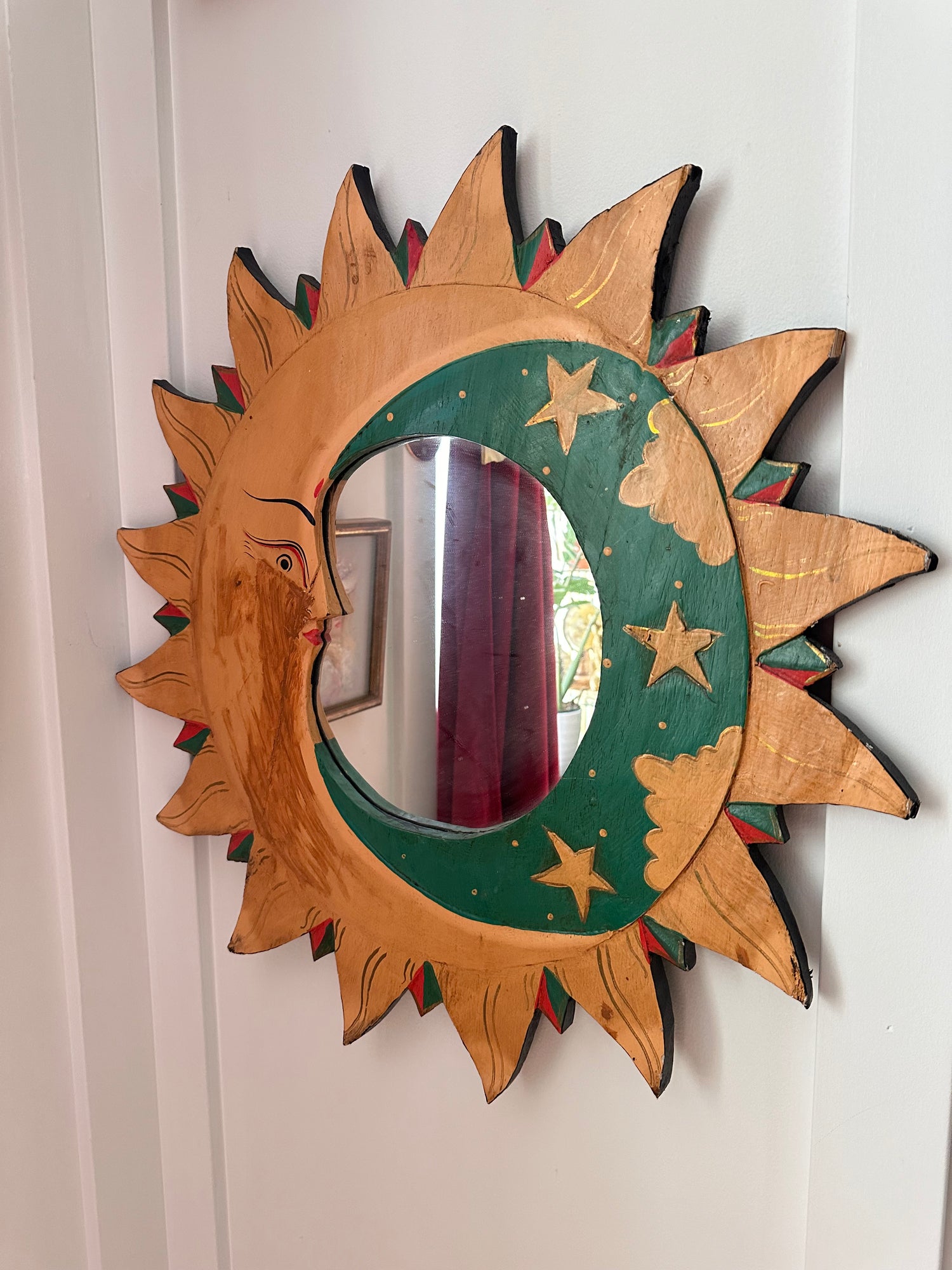 The Sun and the Moon Vintage Folk Art Handpainted Wooden Vintage Mirror