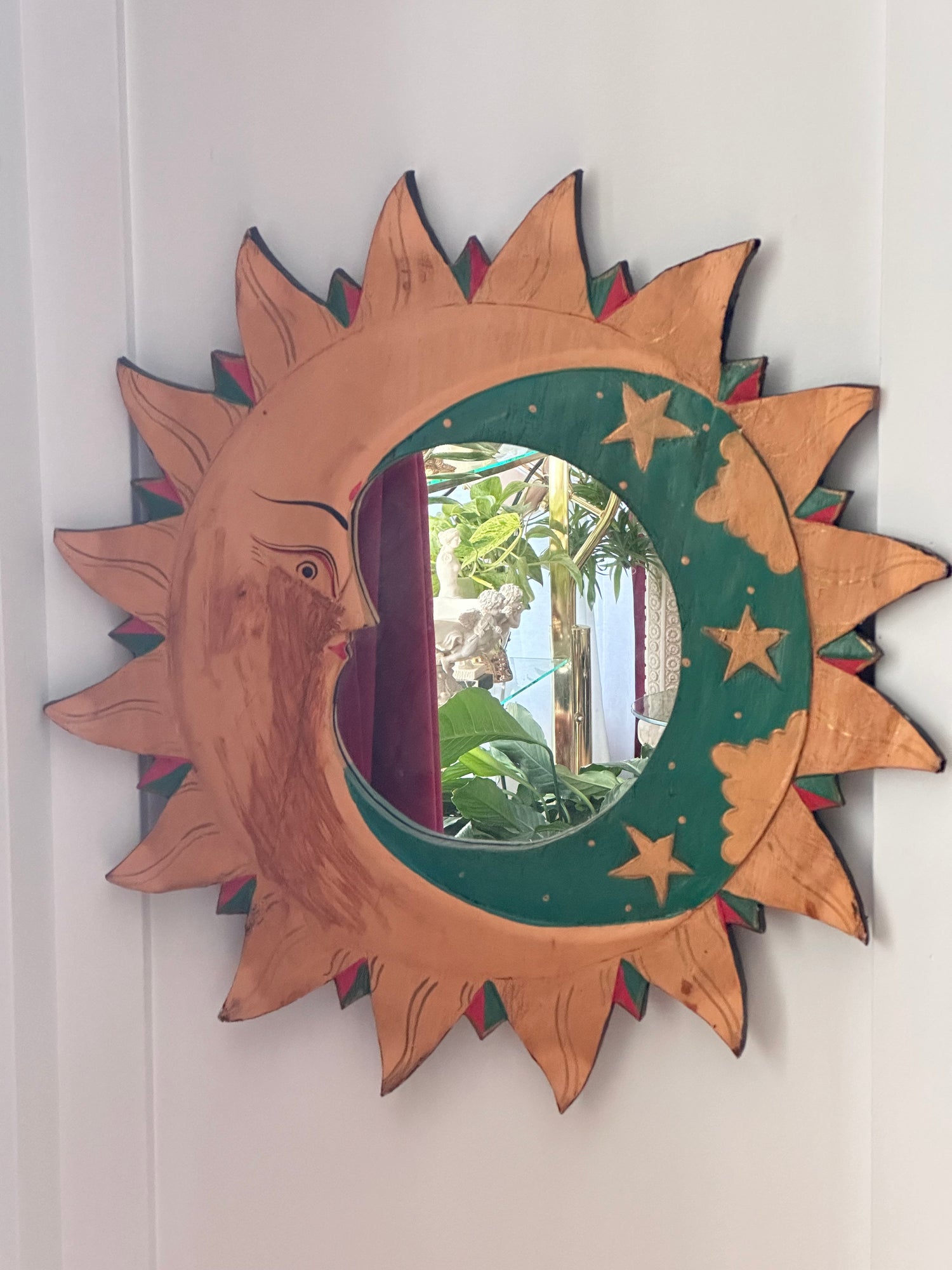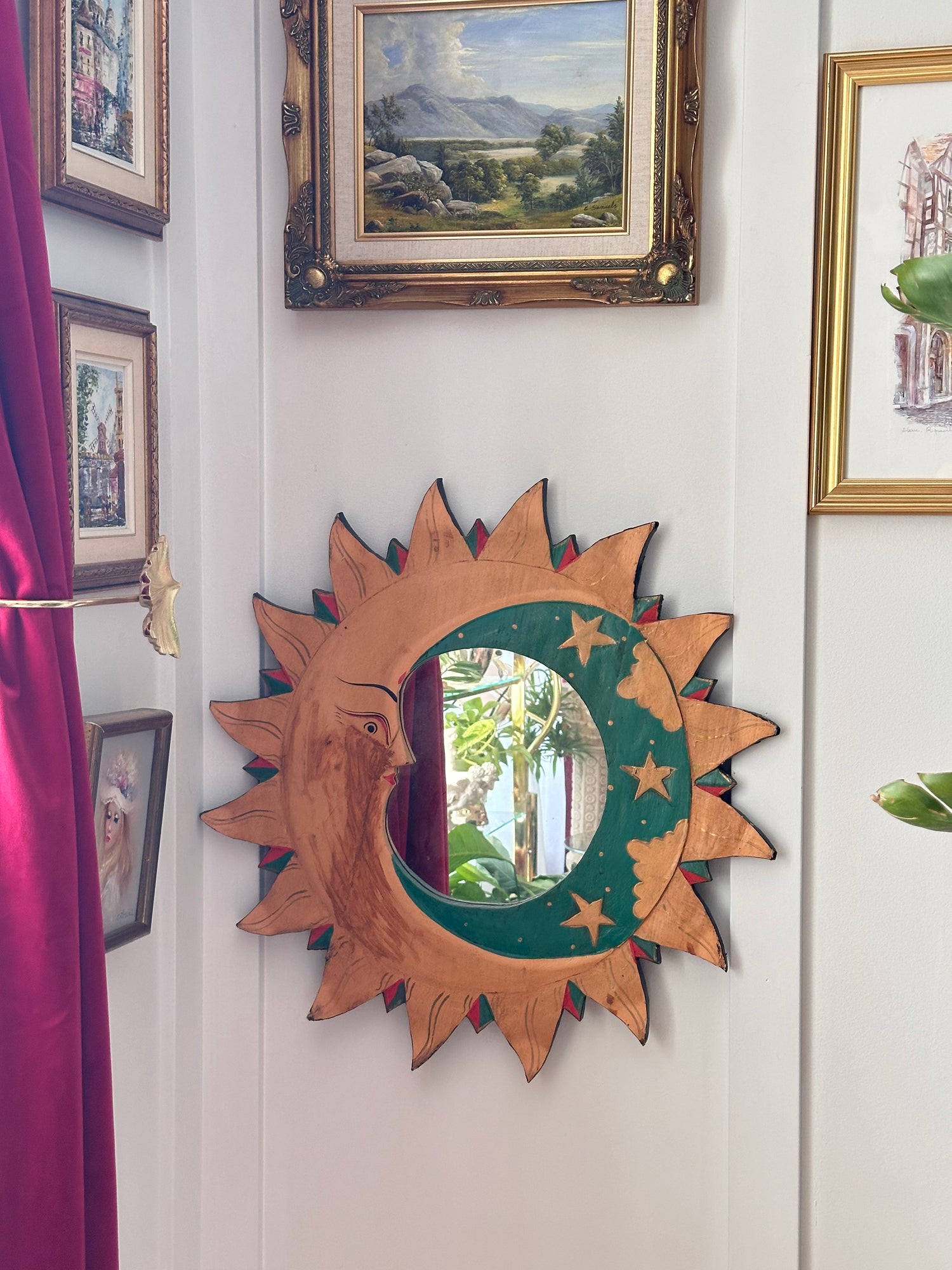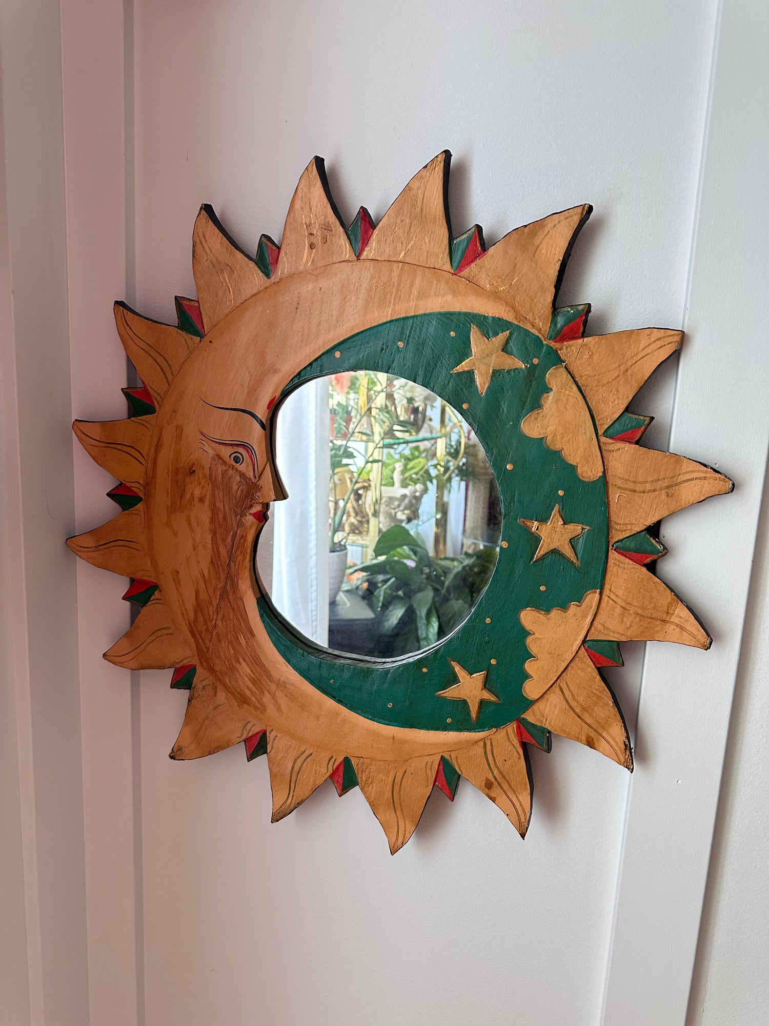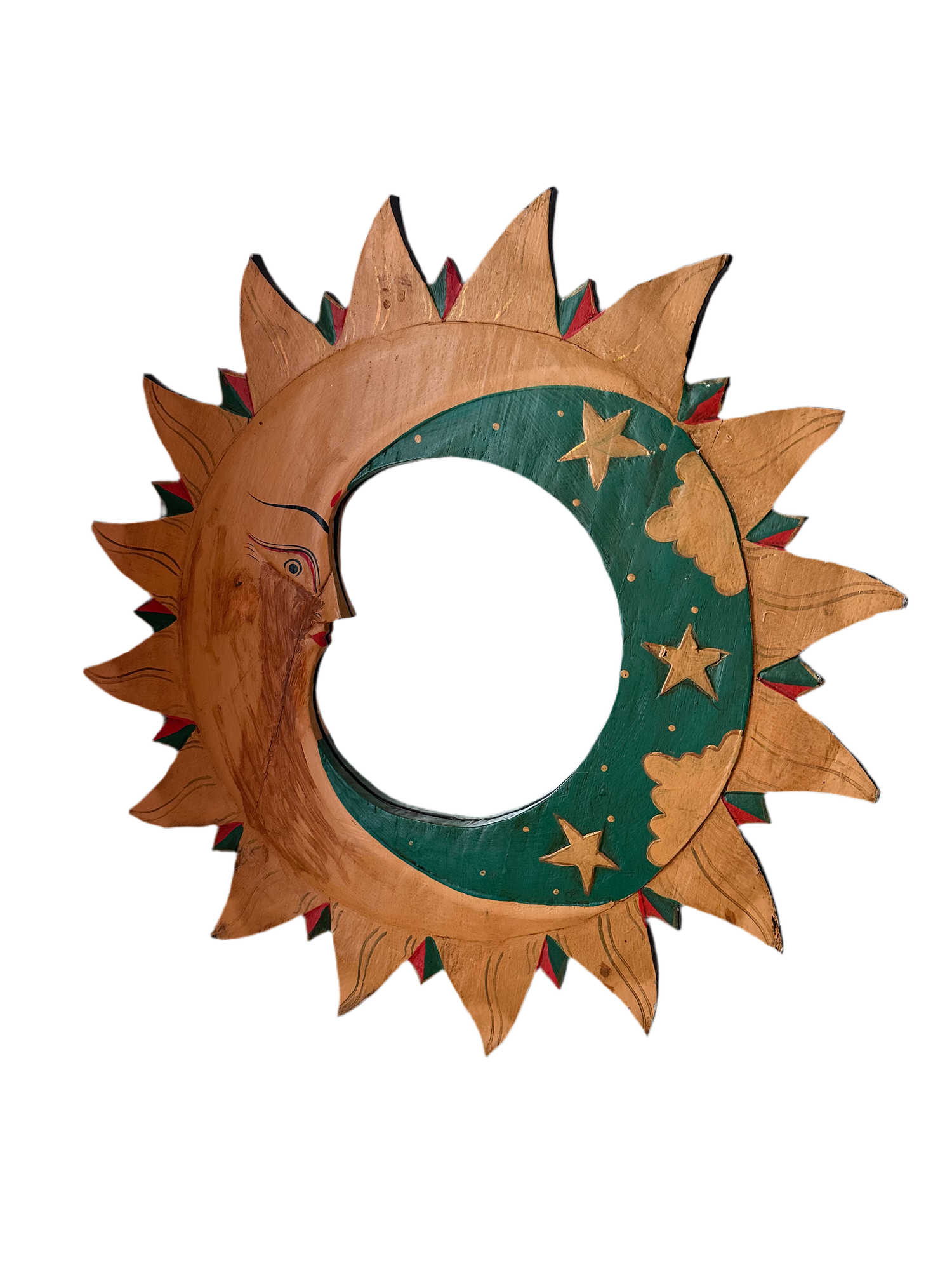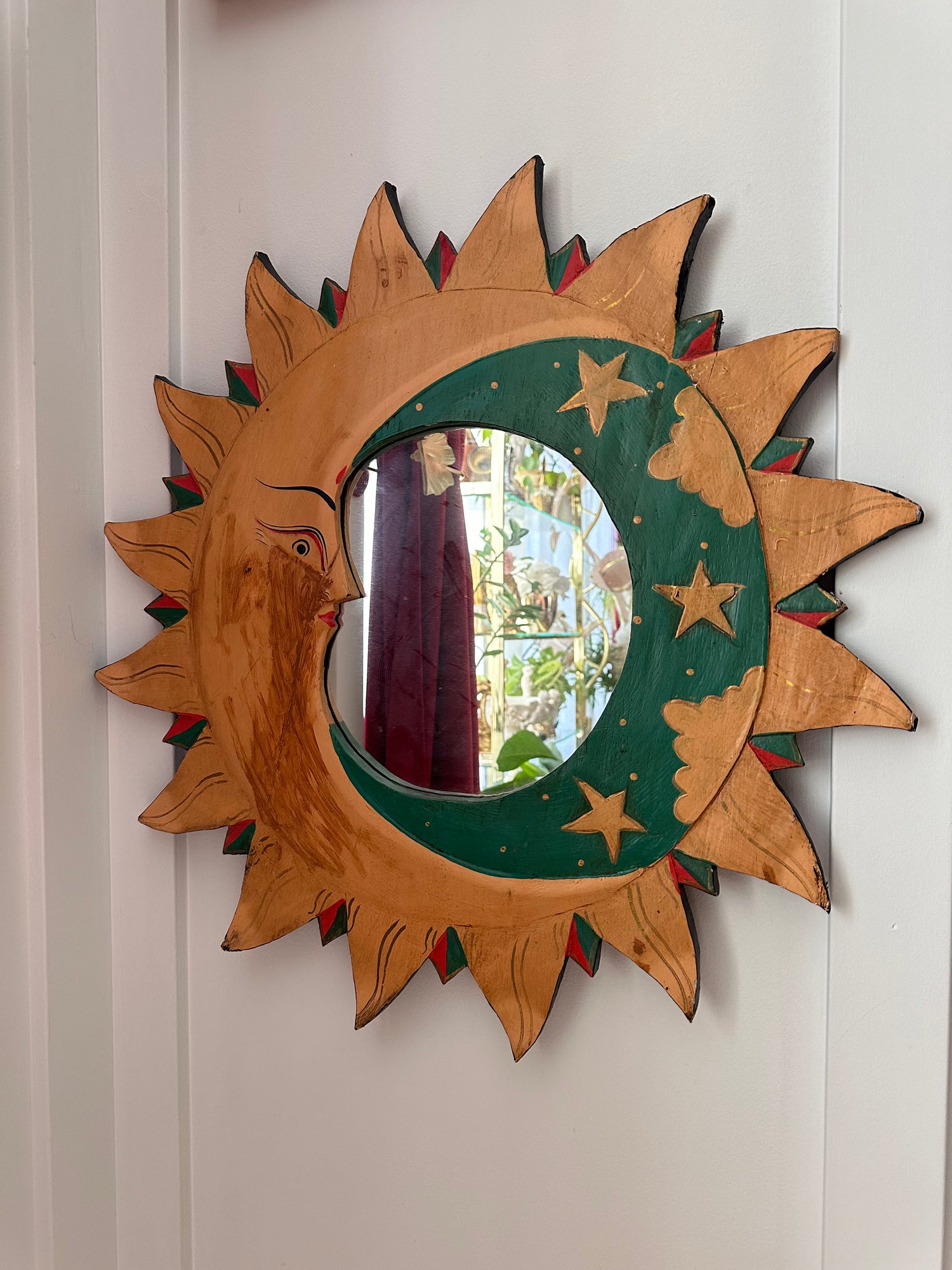 The Sun and the Moon Vintage Folk Art Handpainted Wooden Vintage Mirror