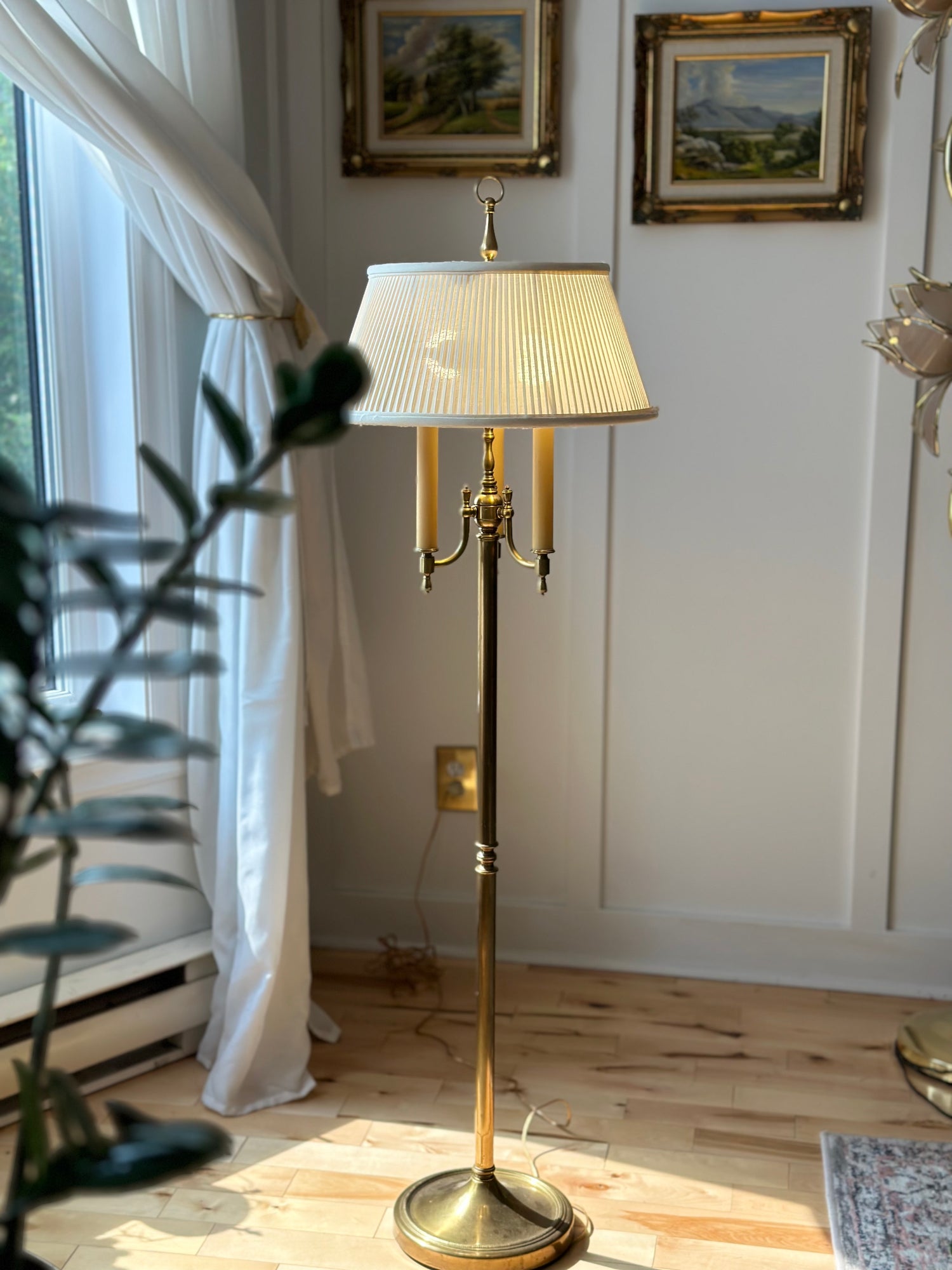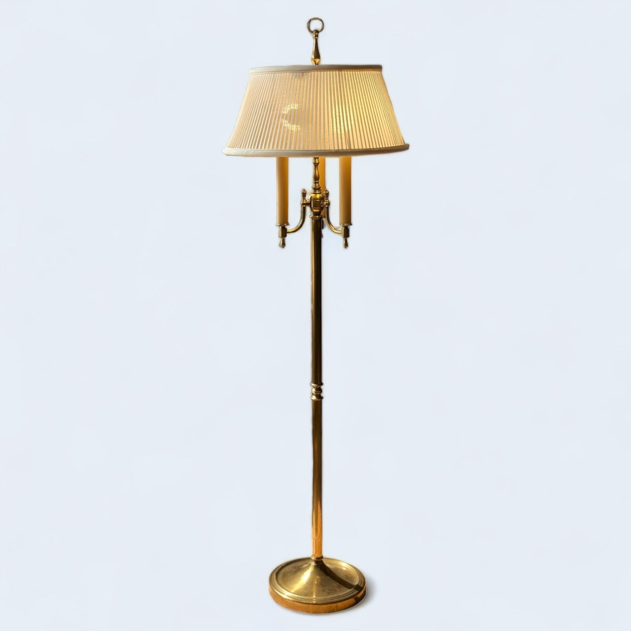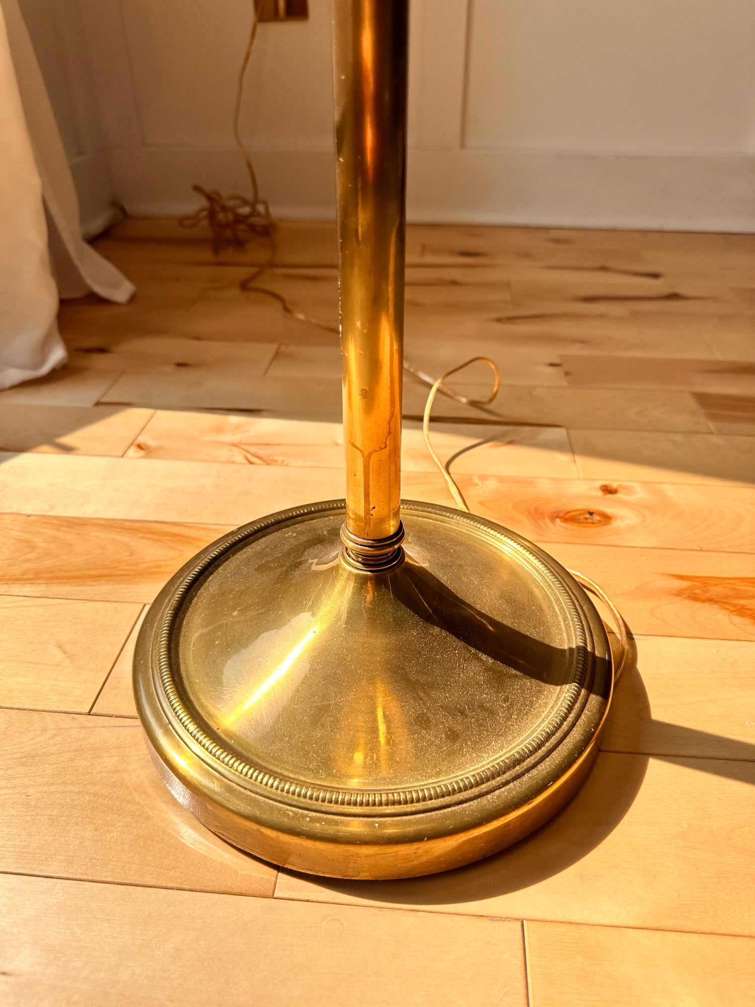 Antique Floor Lamp Brass Body & White Textile Original Shade