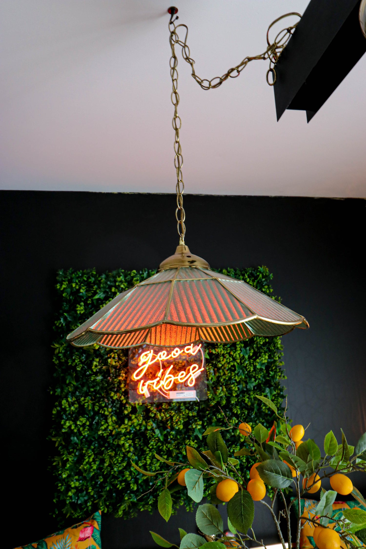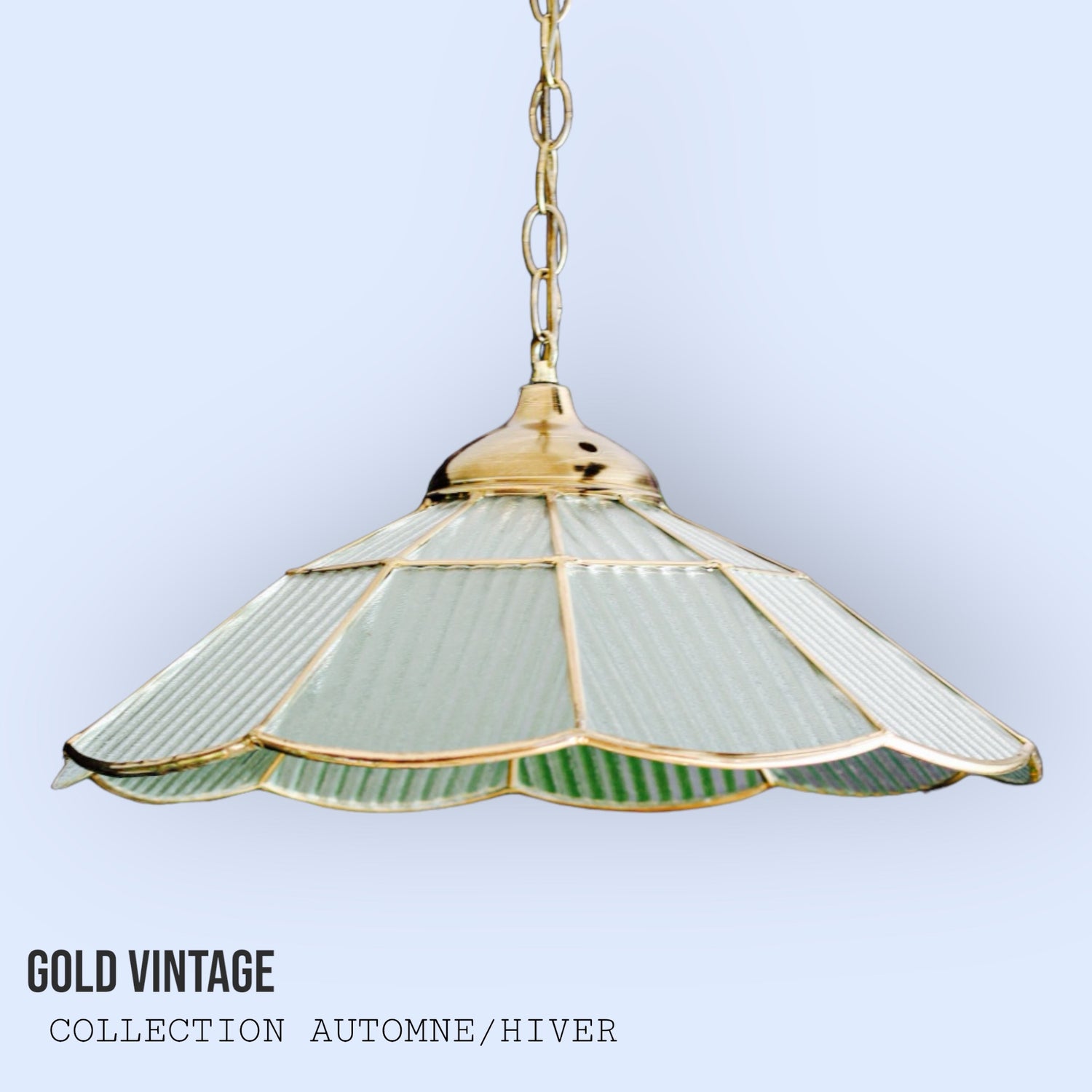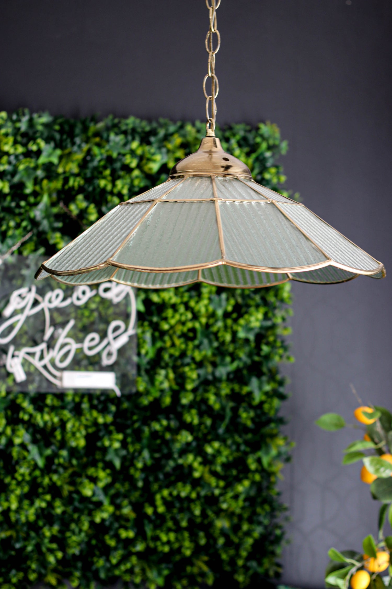 Vintage Brass Pendant with Gold Chain and Lancaster Shade