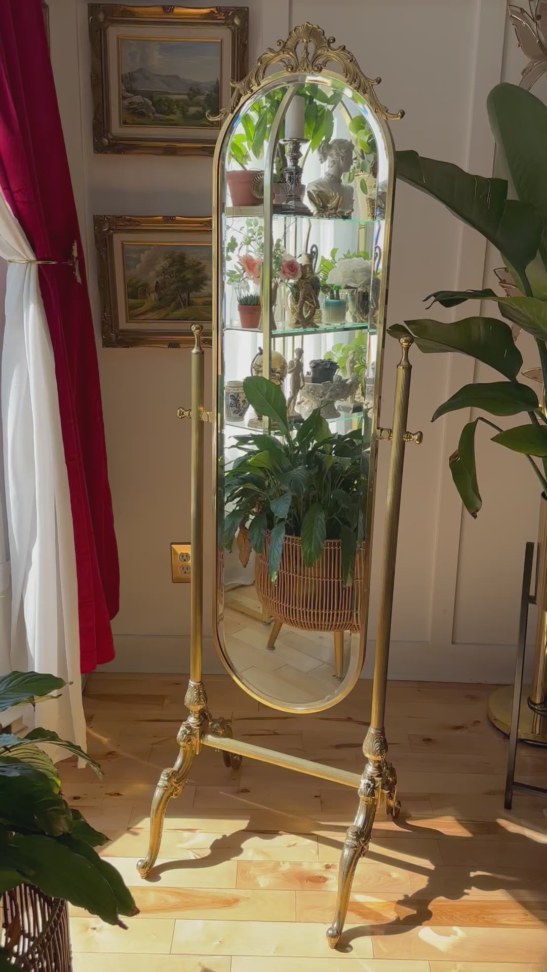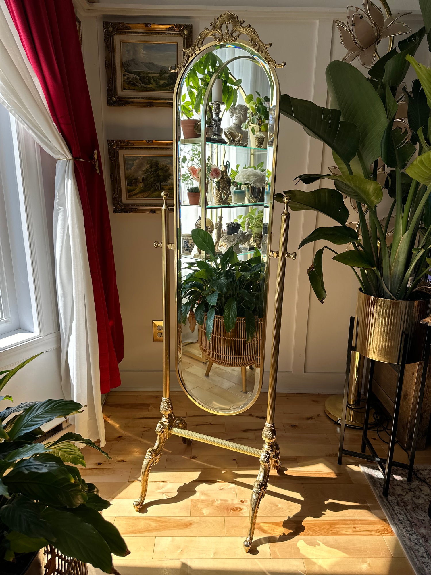 Vintage Brass Standing Mirror