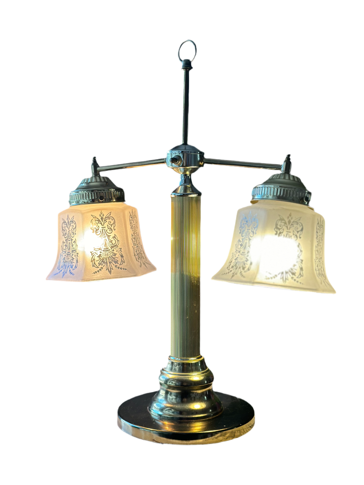 Vintage Brass Table Lamp, Victorian Morif Glass Shades