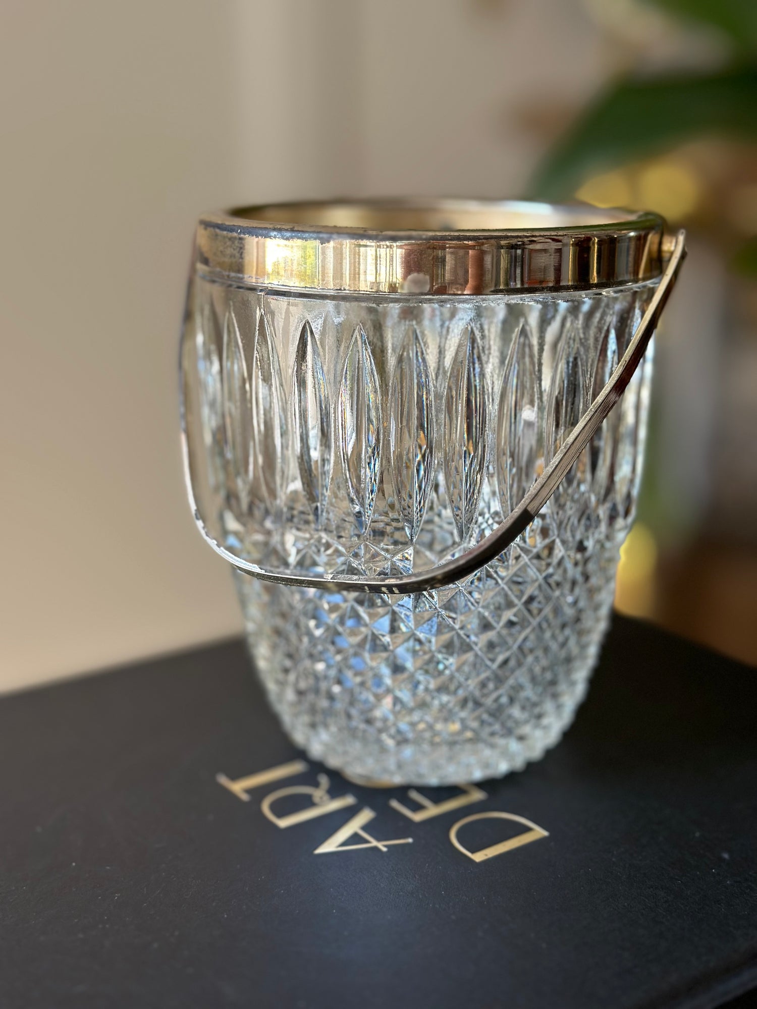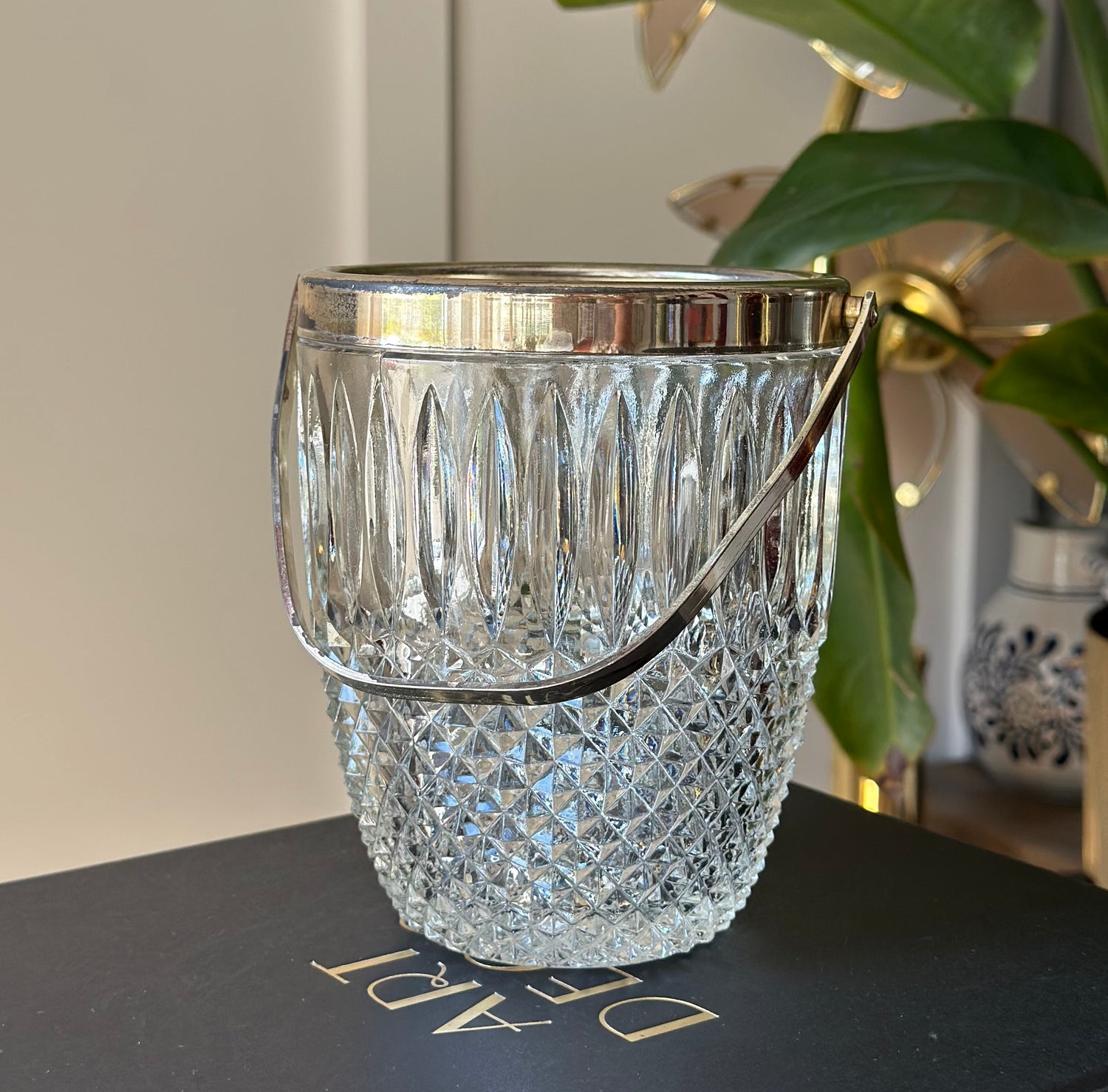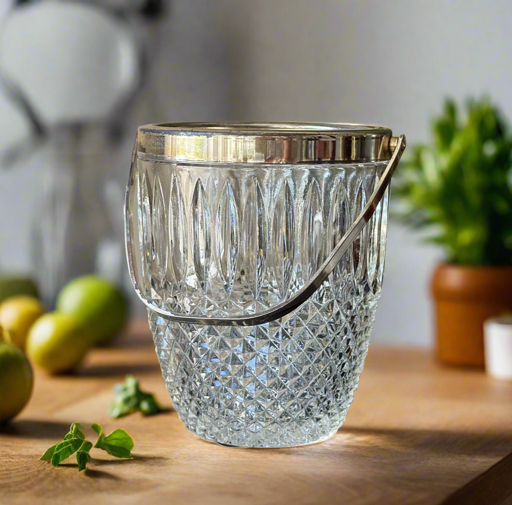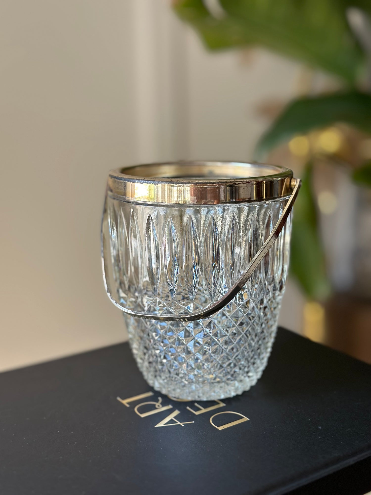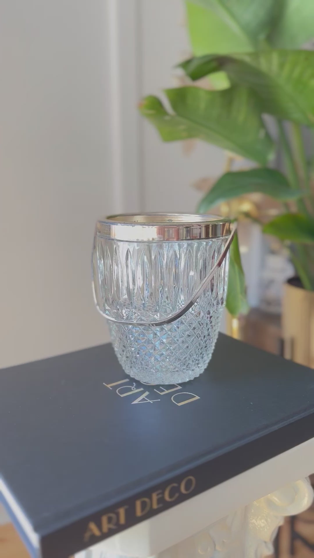Vintage Barware Ice Bucket Lead Crystal Silver Handle Diamond Style.