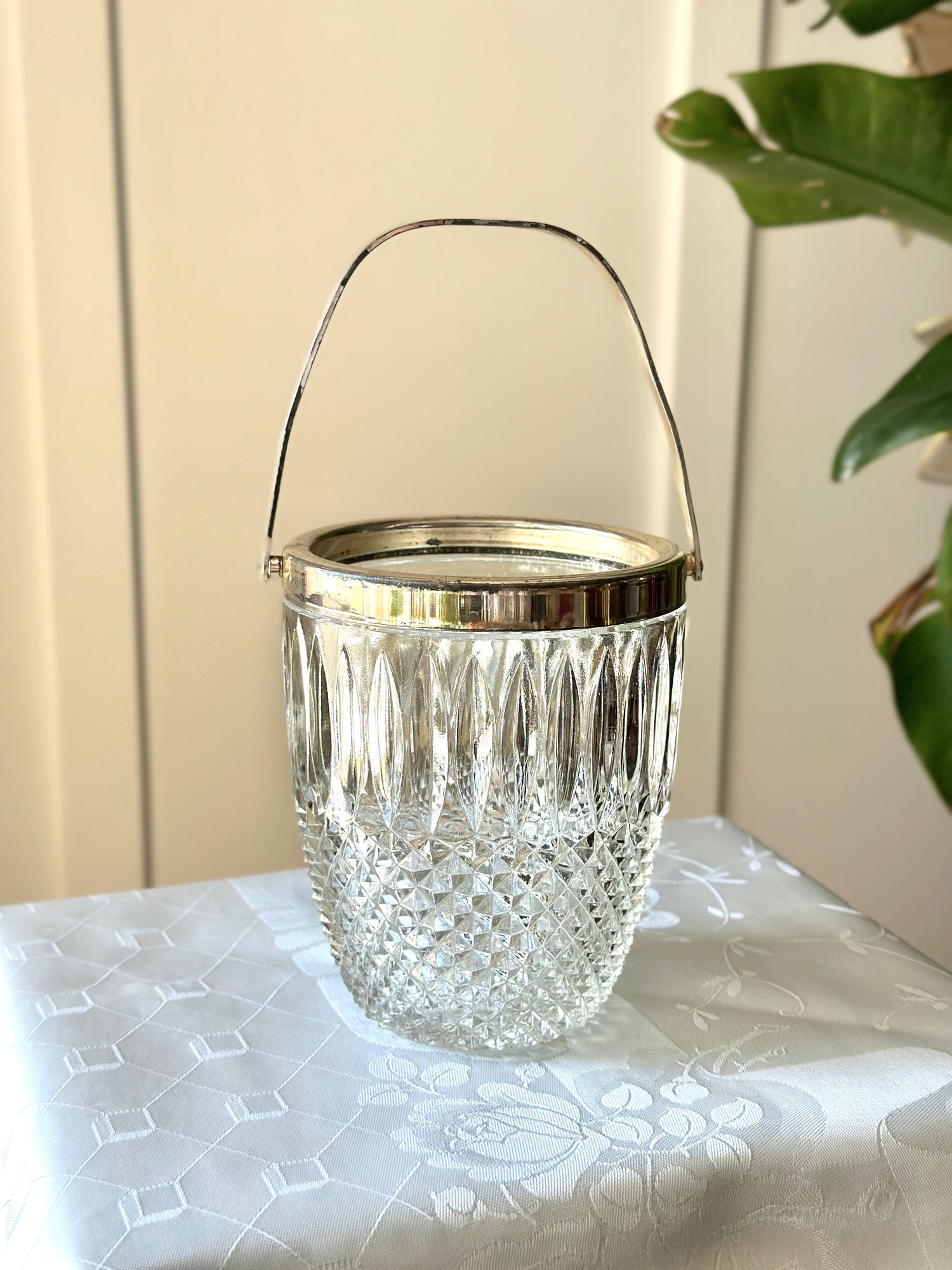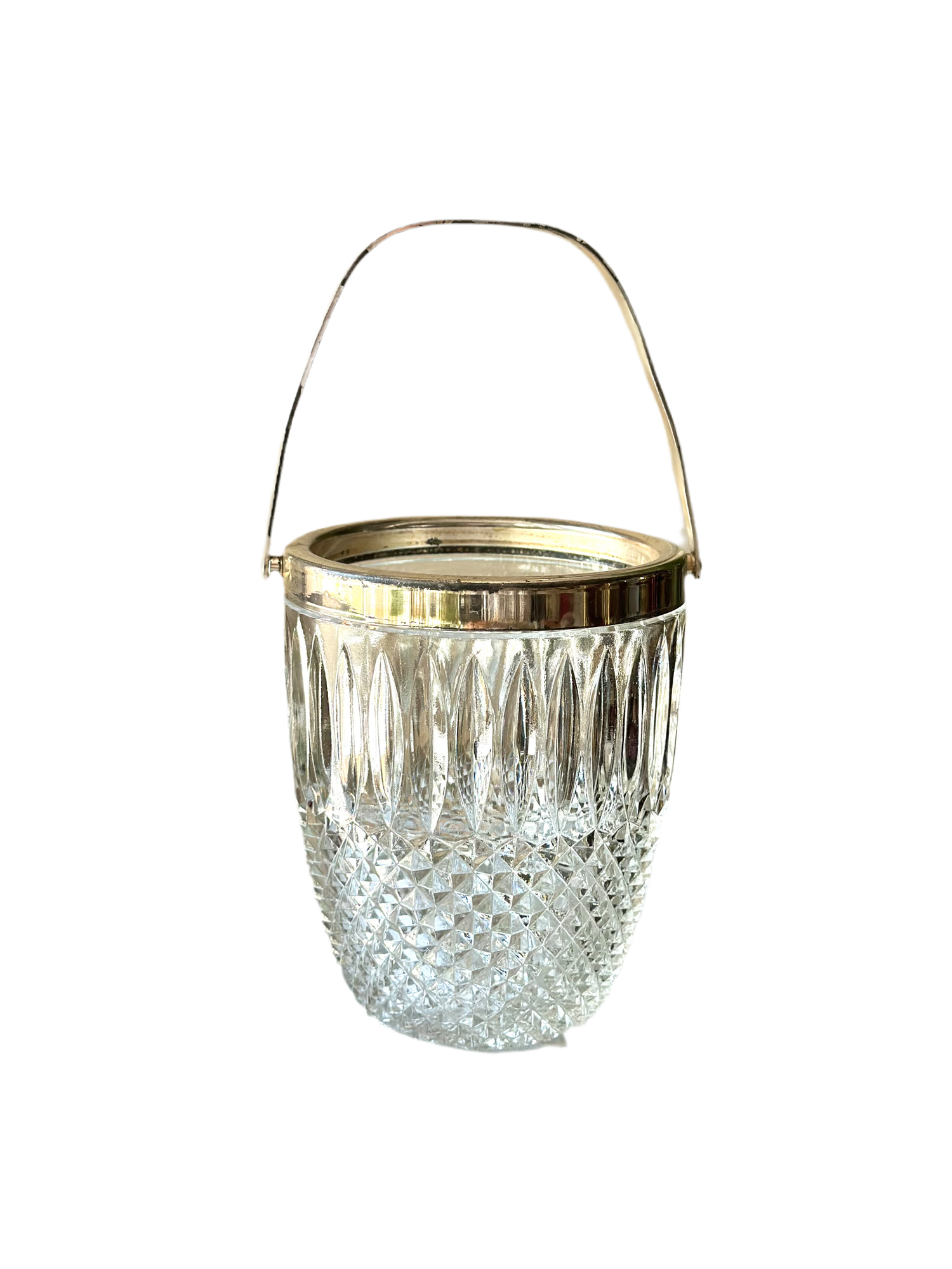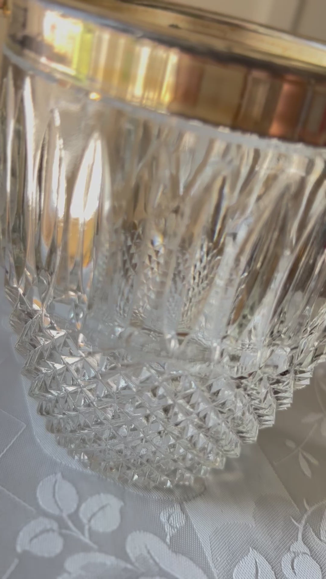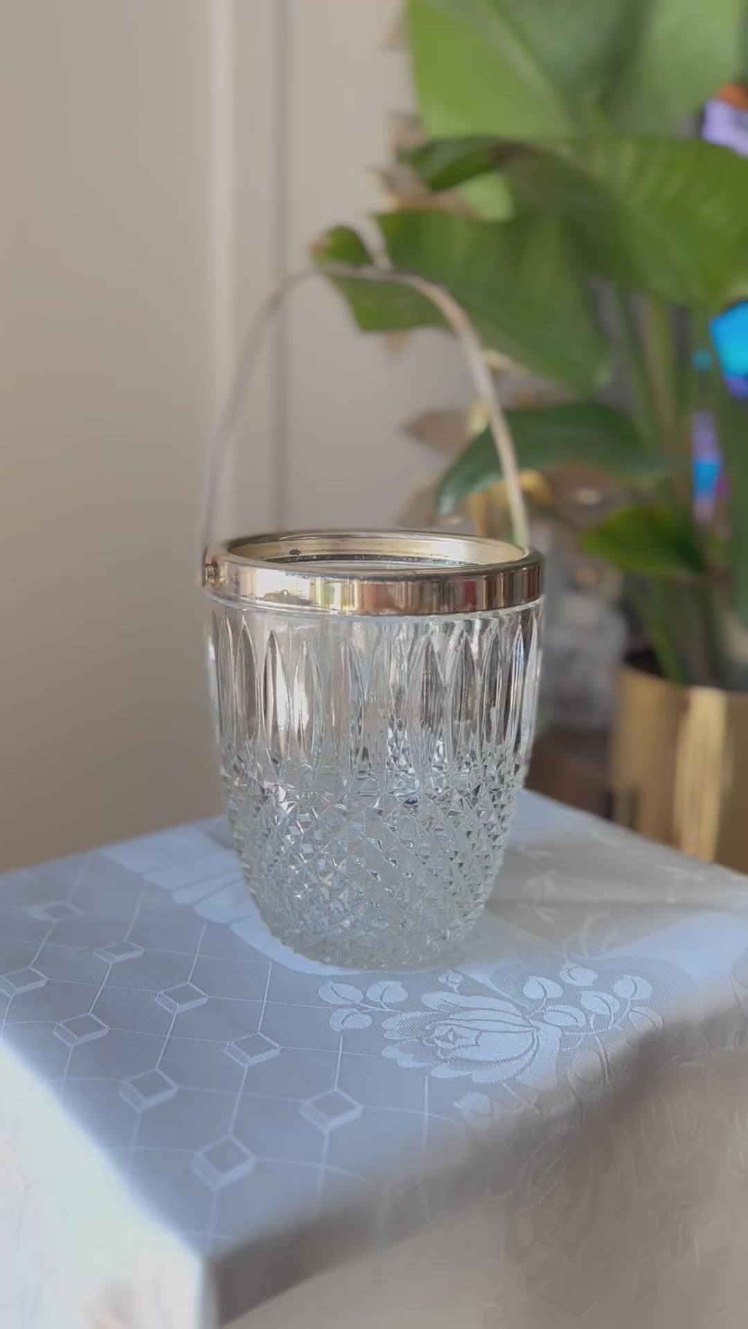 Vintage Barware Ice Bucket Lead Crystal Silver Handle Diamond Style.