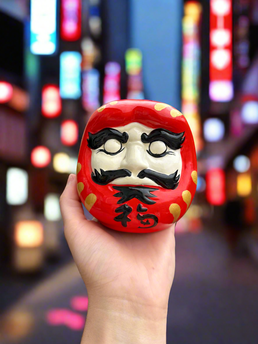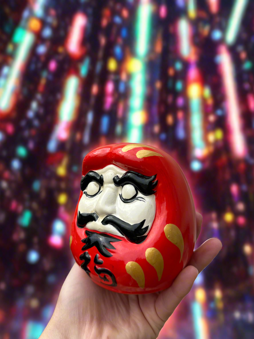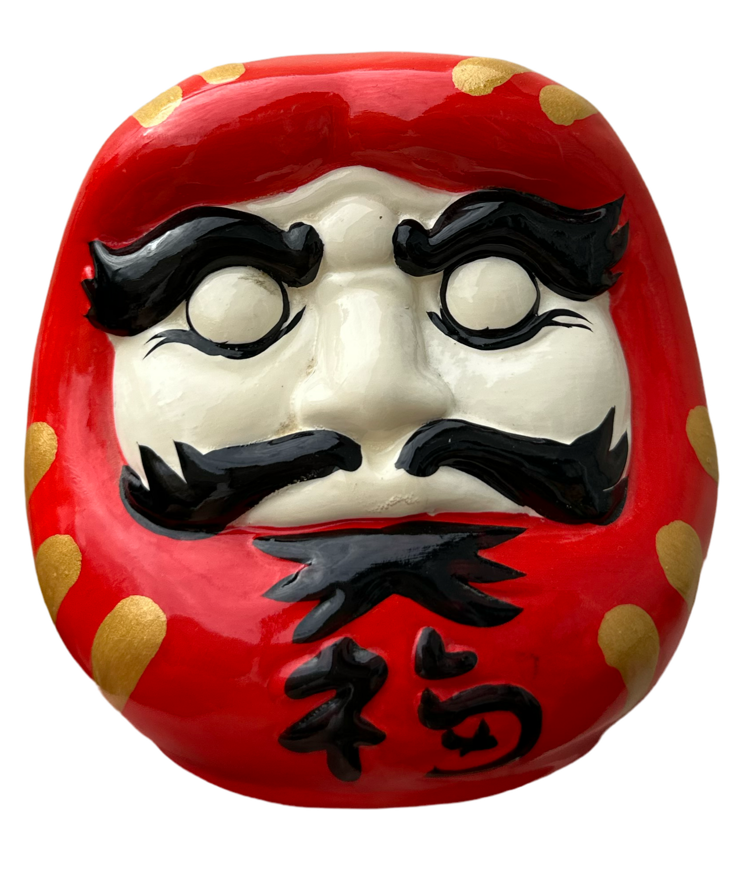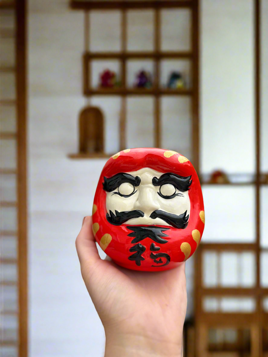 Beautiful Japanese Daruma Ceramic Red-painted 3.75” Tall